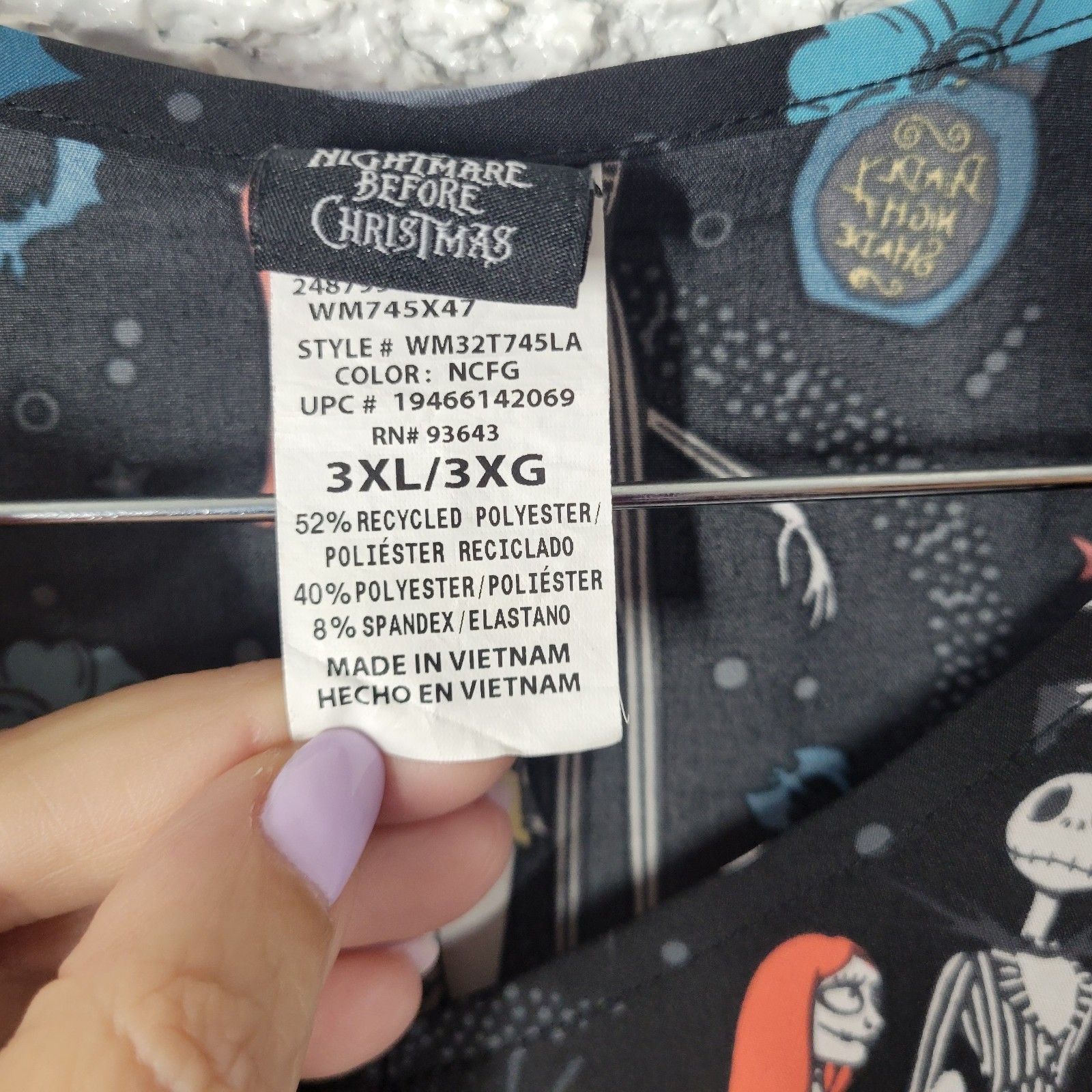 Disney Nightmare Before Christmas Scrub Top 3XL Unisex Black Medical Nurse Jack