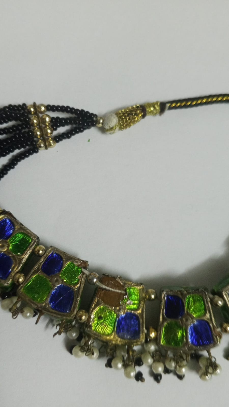 Traditional Indian Black Beaded Choker Necklace - Ethnic Fashion Jewelry - Used