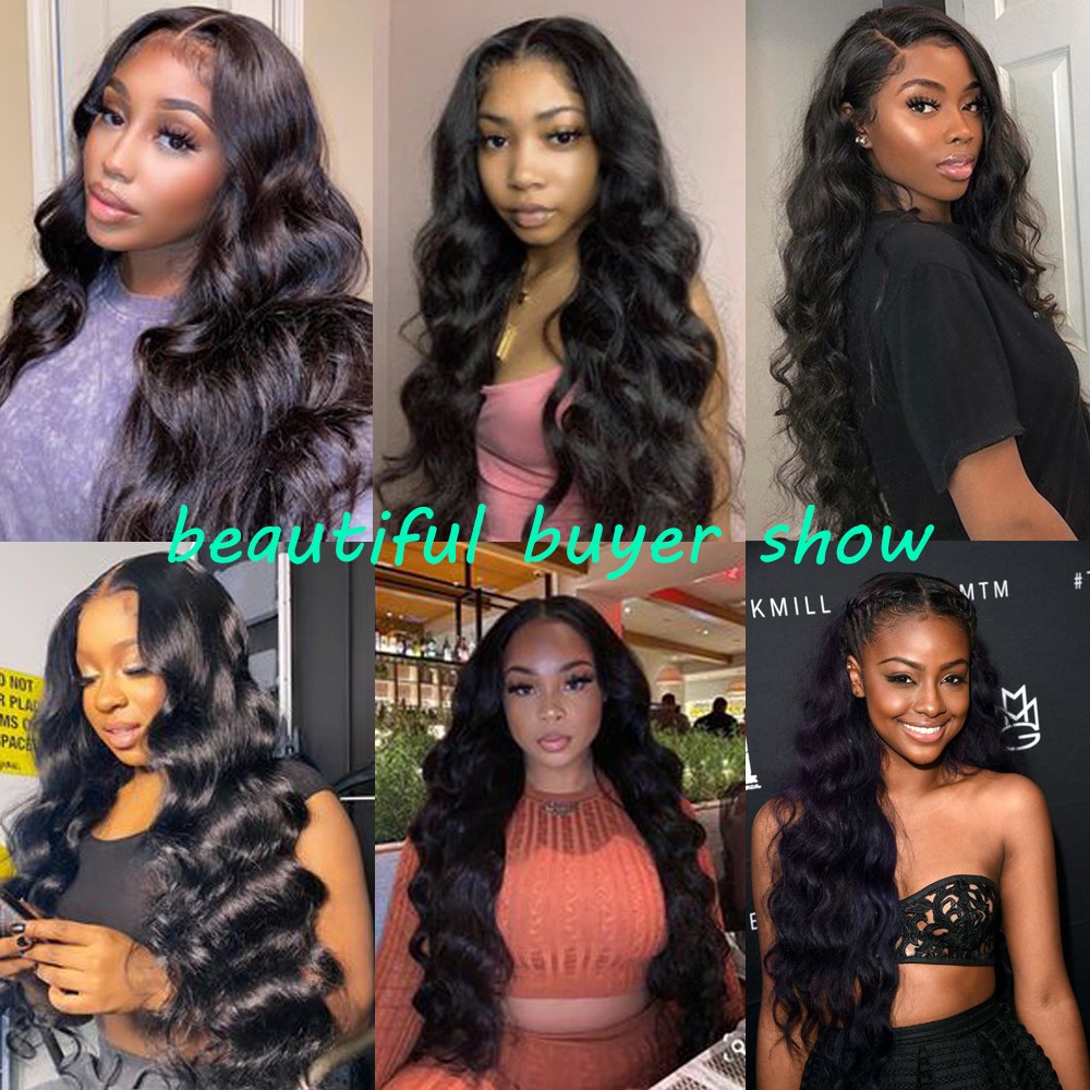 Heat Resistant Synthetic Hair Off black Soft Long Wavy Lace Front Wig