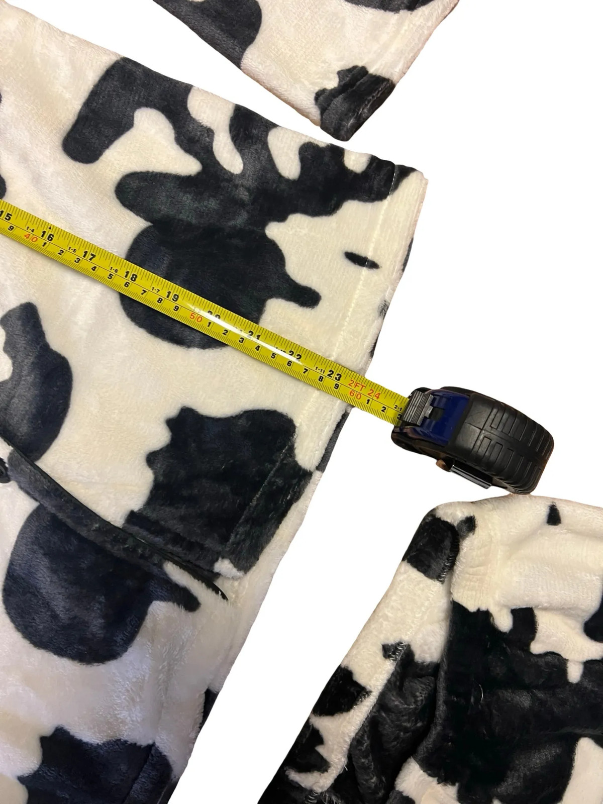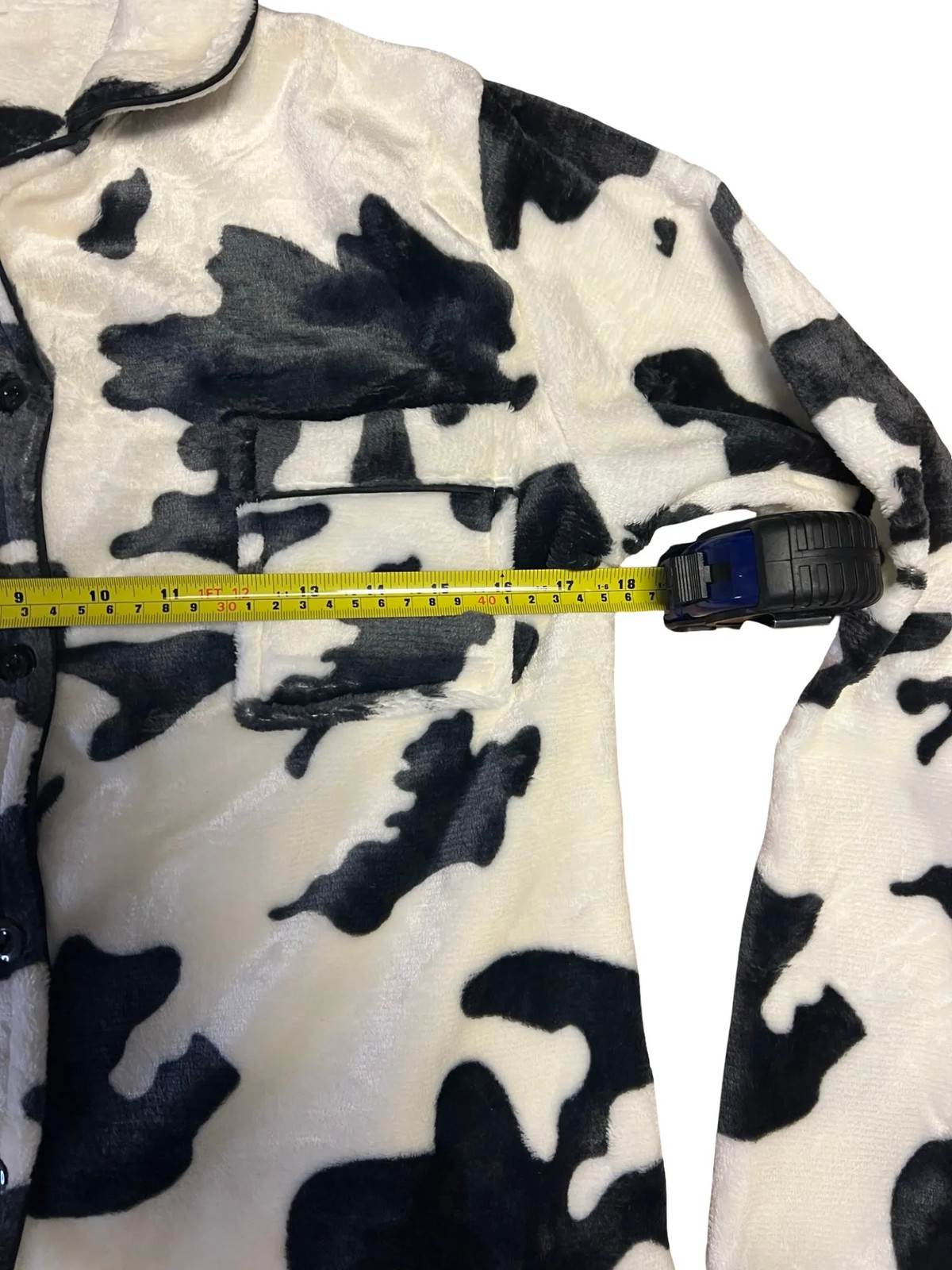 Womens Cow Print Pajama Set Size M Plush Fleece Two Piece Loungewear