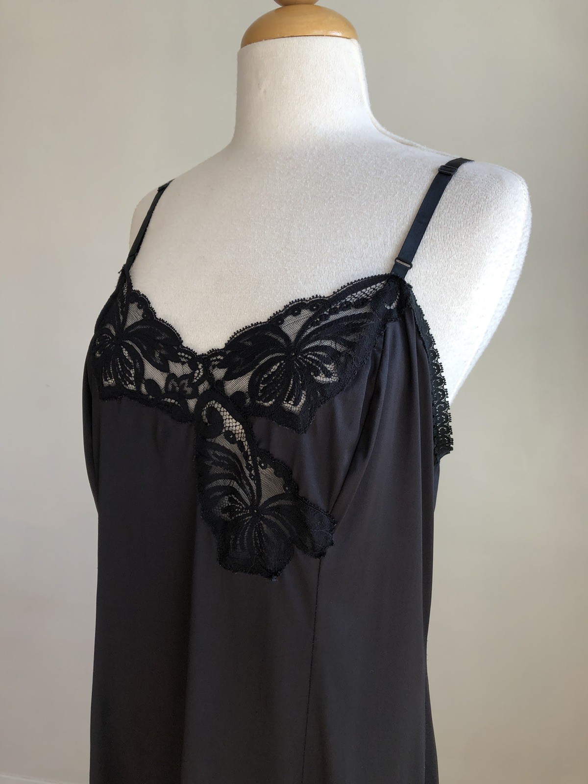 как выглядит BEAUTIFUL VTG WONDER MAID Non-cling Black Nylon Lace Full-slip Dress SZ 38 фото