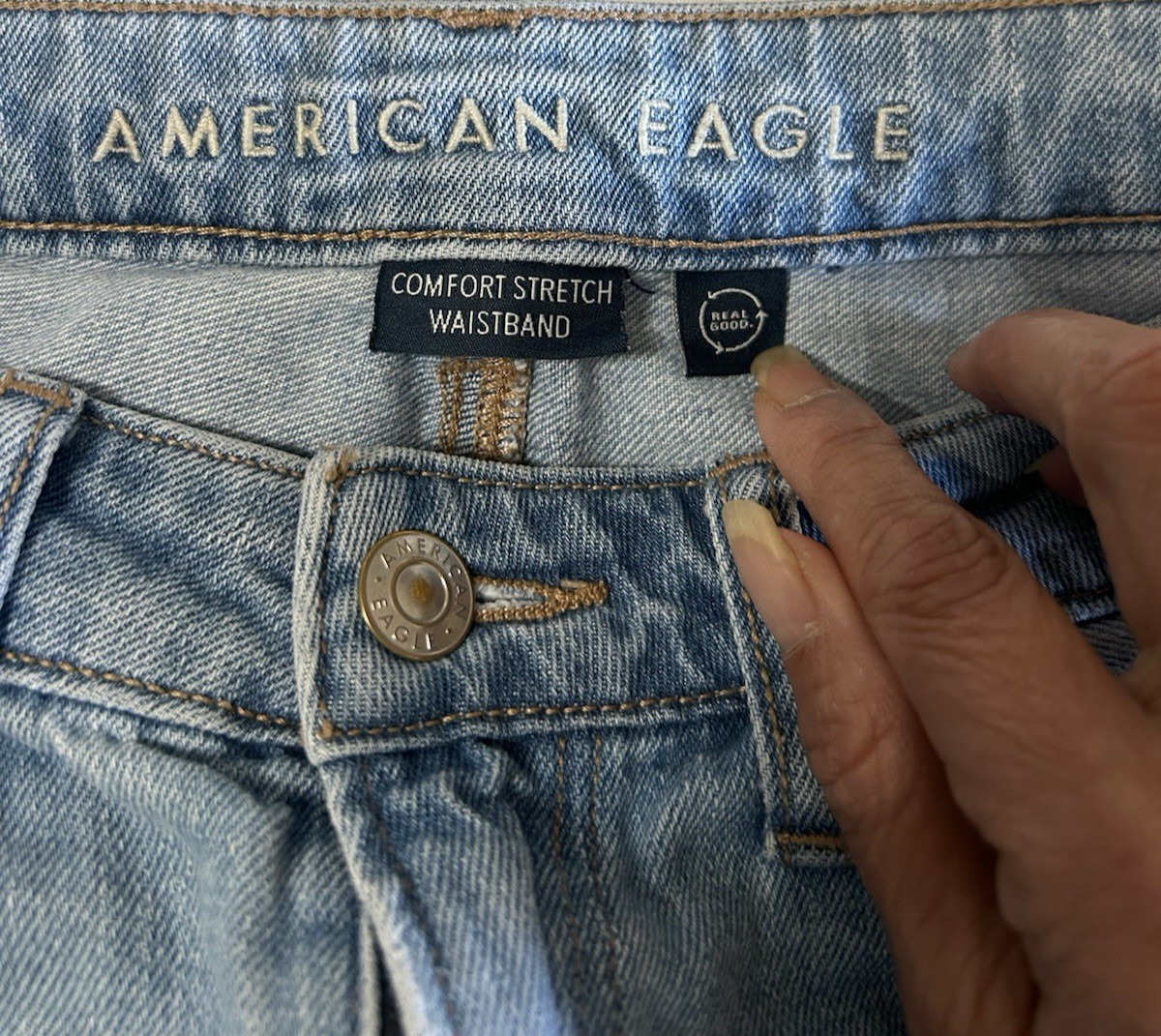 как выглядит American Eagle Comfort Stretch Waistband Distressed Mom Jean Denim Women Size 4. фото