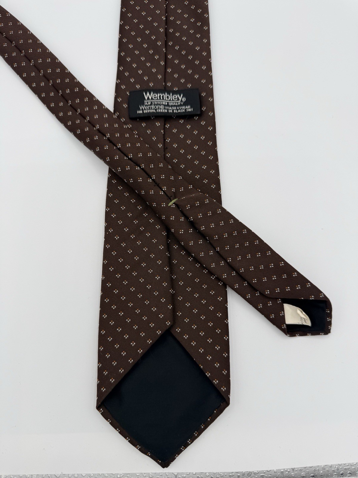 Wembley Wemlon Tie Brown Neat Pattern Skinny 56 x 3 Vintage Necktie