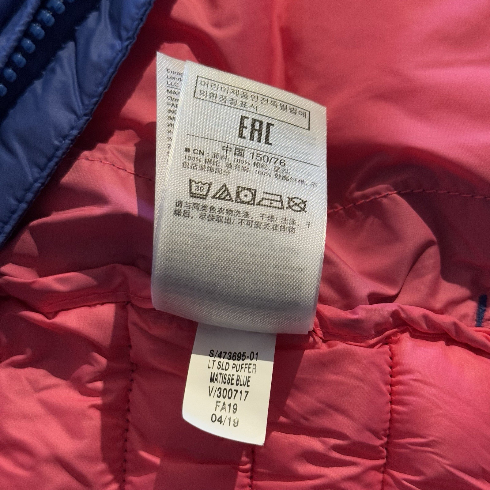 как выглядит Gap Kids Puffer Jacket Hooded  Blue with Coral Lining  Size XL 12 13 Years фото