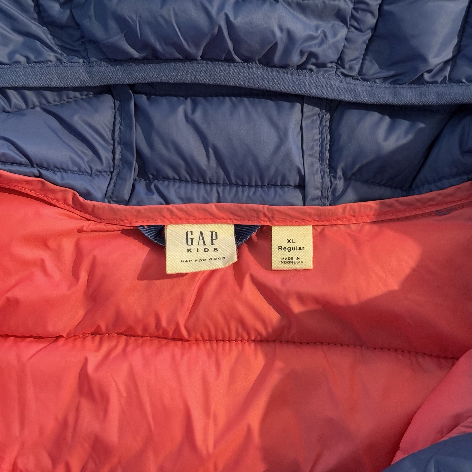 Gap Kids Puffer Jacket Hooded Blue with Coral Lining Size XL 12 13 Years
