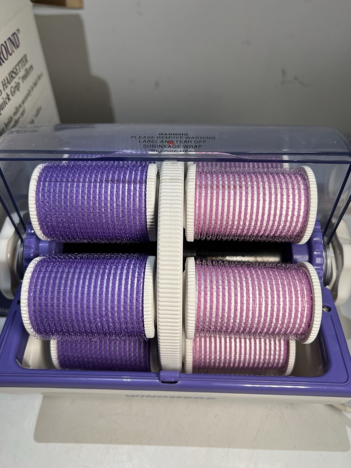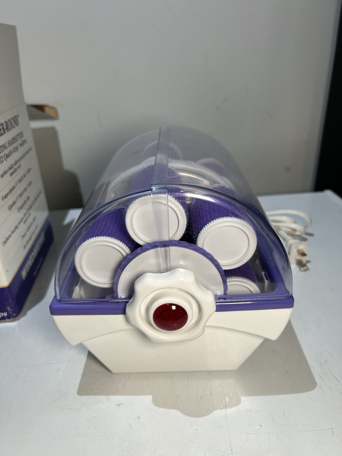 Windmere Roller-Round rotating hairsetter features 12 Quick Grip rollers. OpenB