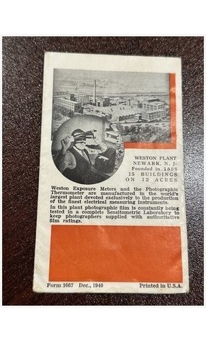 Weston Film Ratings Guide 1940: Form 1667 Newark NJ Photo Reference Book
