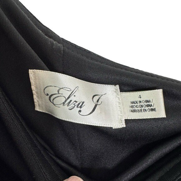 Eliza J Satin Bow One Shoulder Long Formal Dress Black Size 4 Retail 189