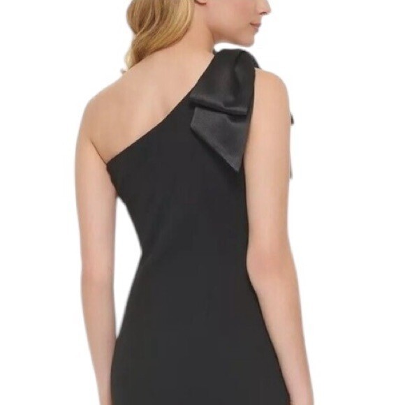 как выглядит Eliza J Satin Bow One Shoulder Long Formal Dress Black Size 4 Retail 189 фото