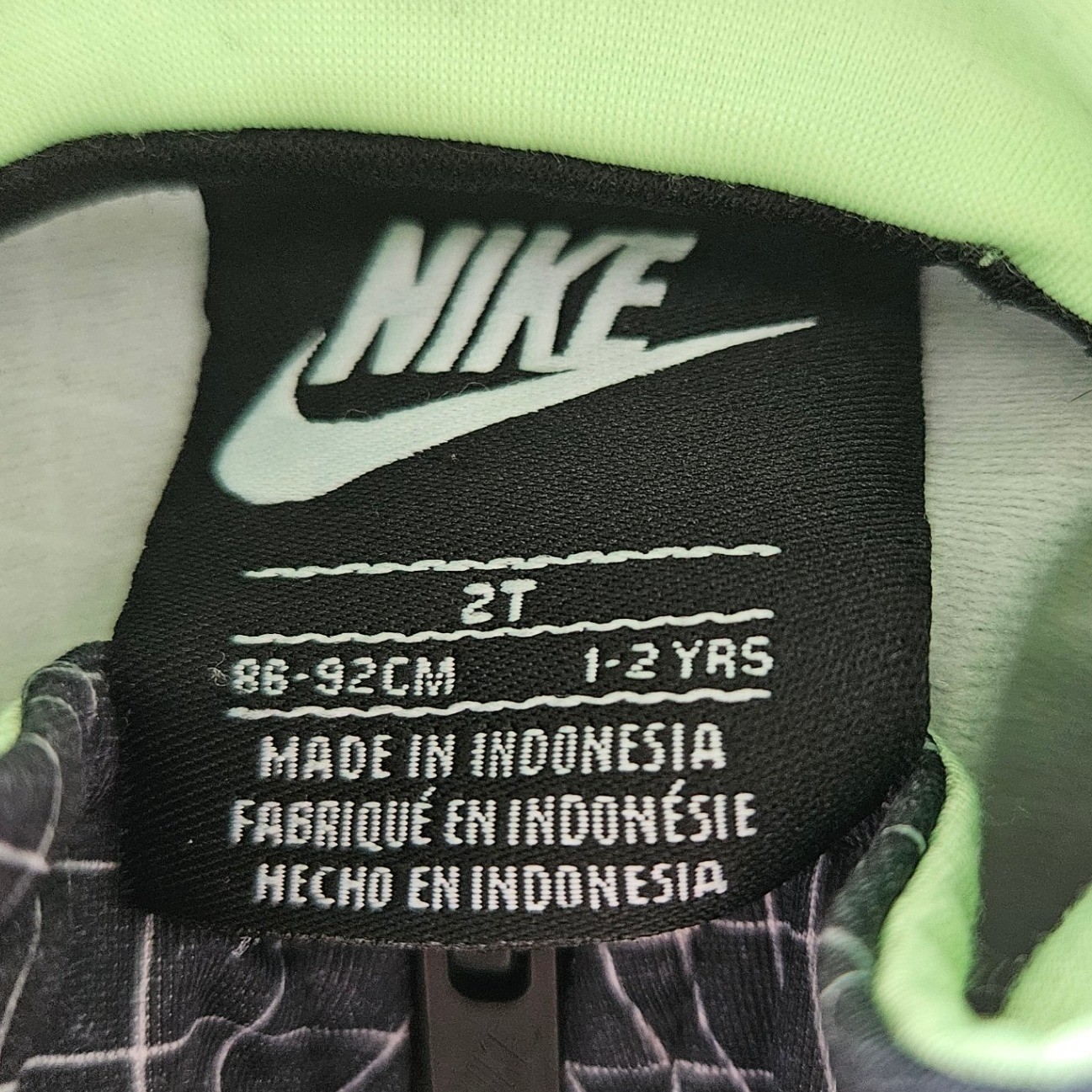 как выглядит Nike Toddler Boys Tracksuit Set Black Neon Green Grid Print Jacket Pants 2T фото
