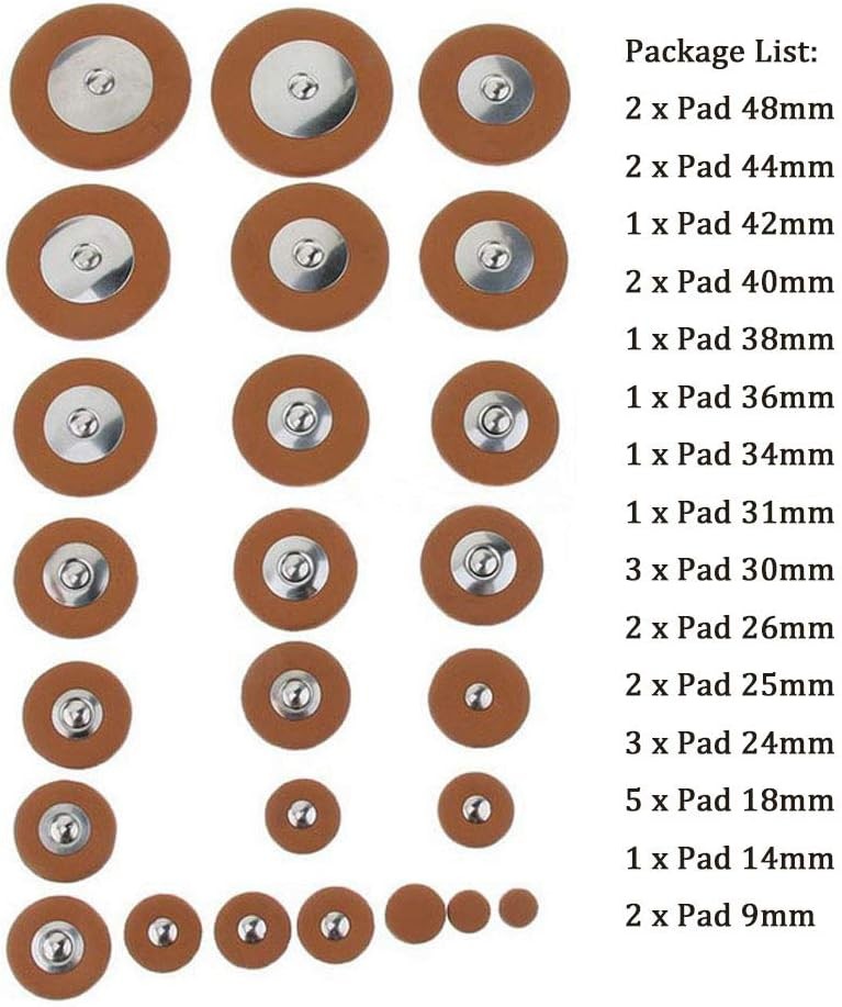 Jiayouy 25 Pieces Leather Pads Alto Sax Pads Replacement Set Saxophone Repair Pa