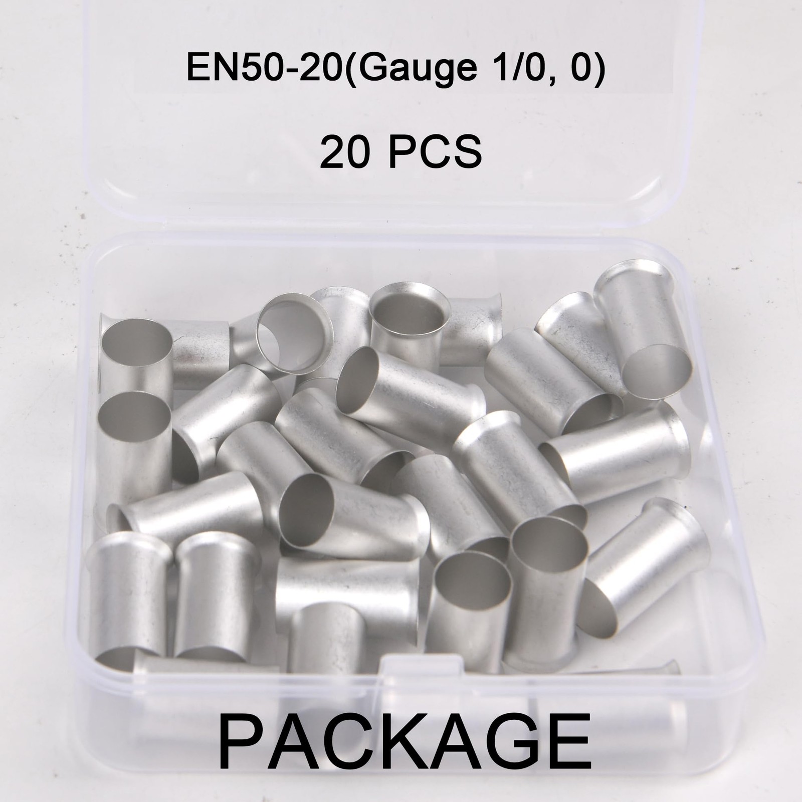 20PCS 1/0 0 Gauge Wire Ferrules Copper Pin Cord - 20PCS, tin