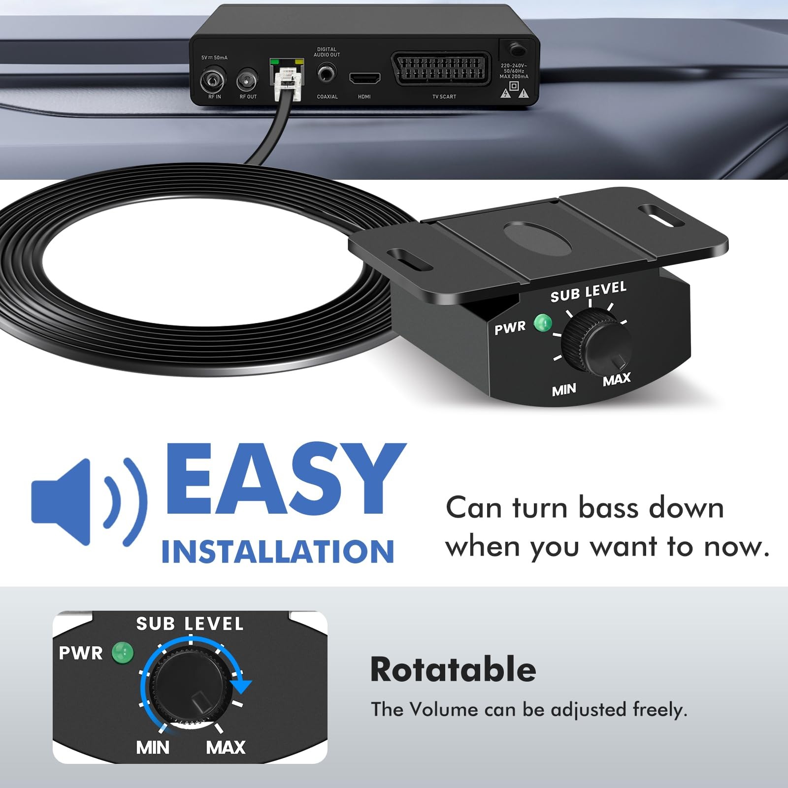 как выглядит NAPHYLAIFA Universal Bass Knob Control for Car Amplifier, 12 Foot, Black фото