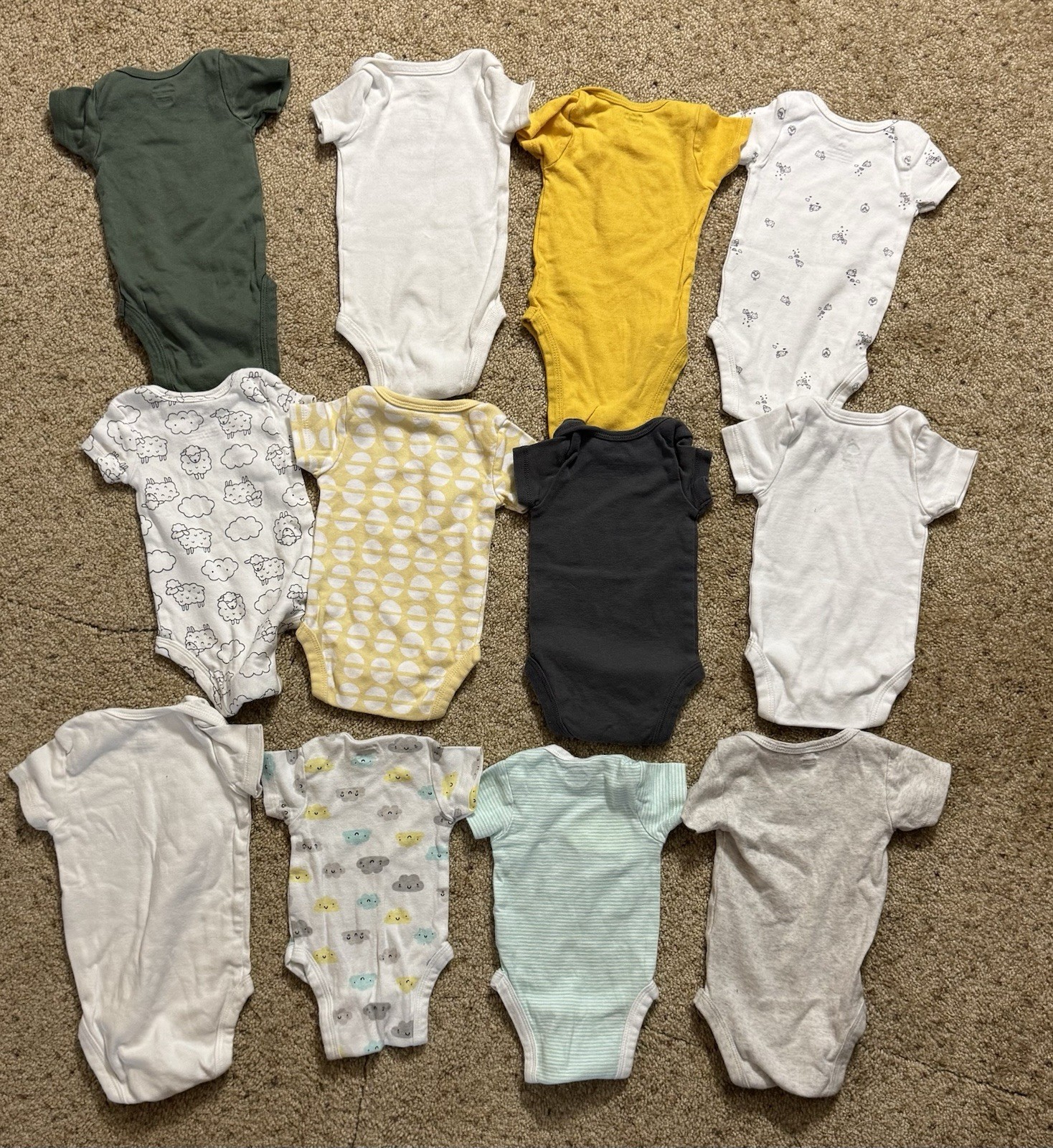 Baby Clothing Lot Of 12 Onesies Bodysuits Size NB Newborn Gerber Love Snuggle