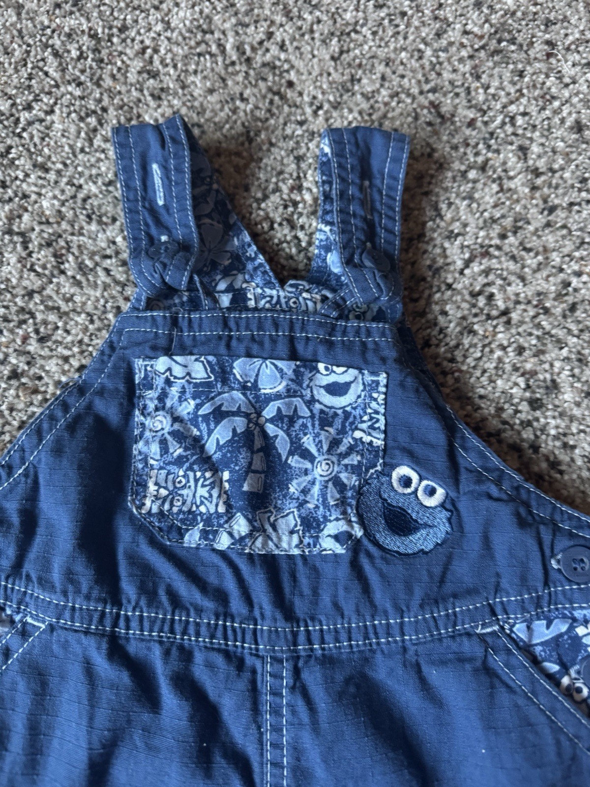 Sesame Street Vintage Cookie Monster Blue Baby Overalls Shortalls 6-9 Months