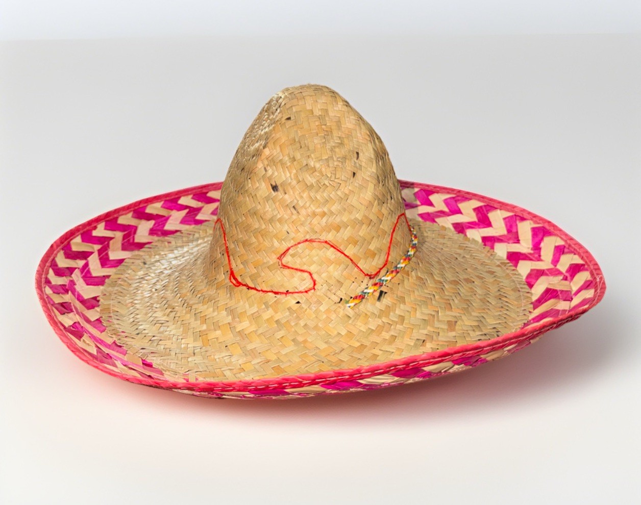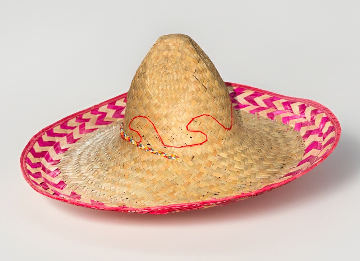 • Authentic Vintage From Mexico Celebration Straw Hat Sombrero Colorful 19 X 7