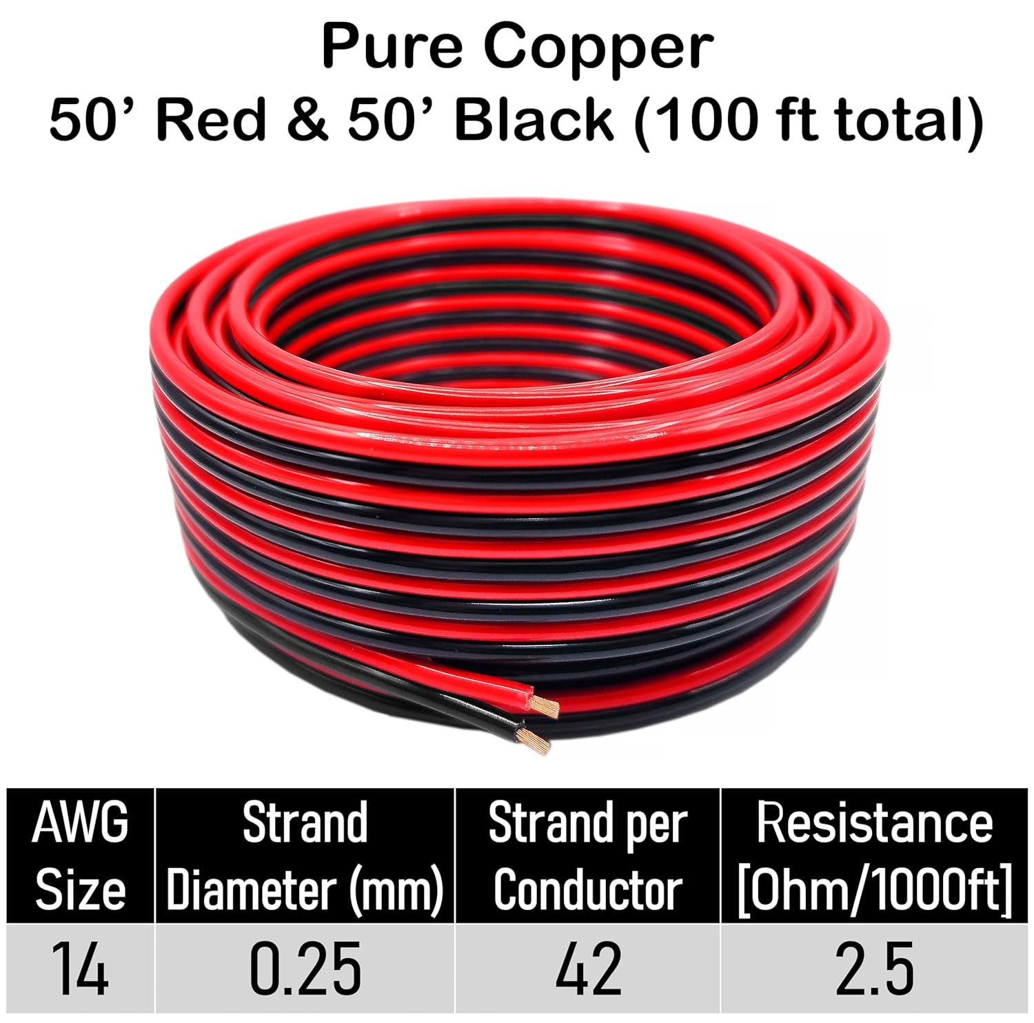 14 Gauge 100 Copper Stranded Red Black Zip Cable OFC 14 AWG American Wire Gu