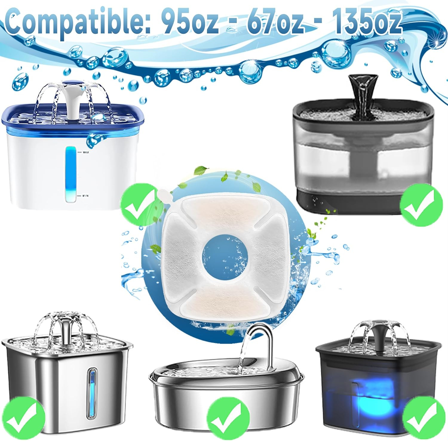 18 Pcs Cat Fountain Filters Replacement Compatible with VEKEN 95Oz/2.8L, 67Oz/2L