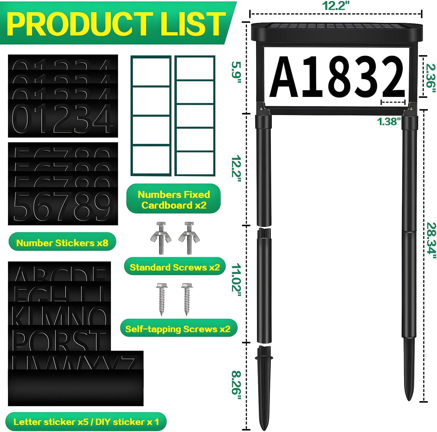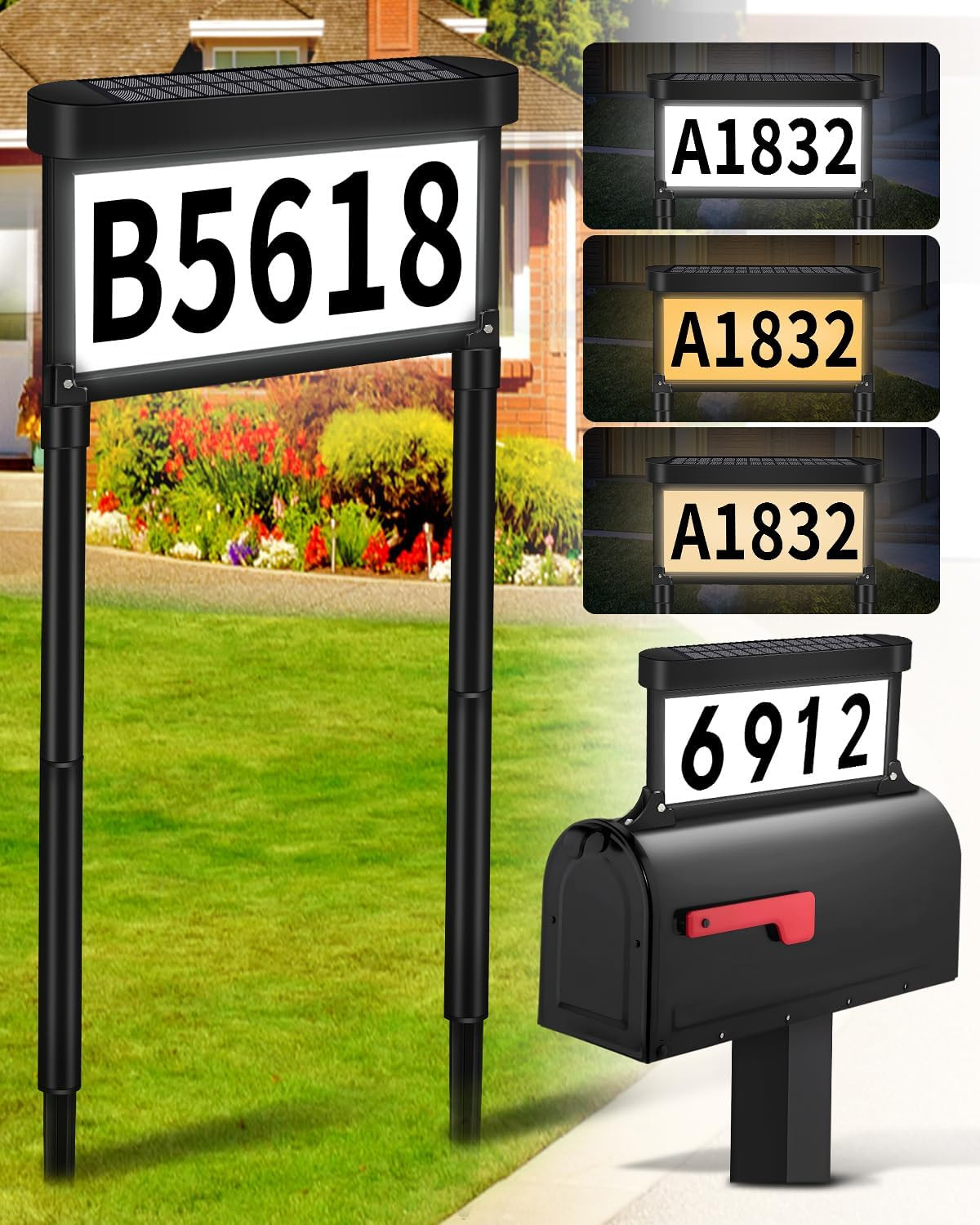Solar Address Sign, House Numbers for outside Light up Double Sided, 3 Colors LE