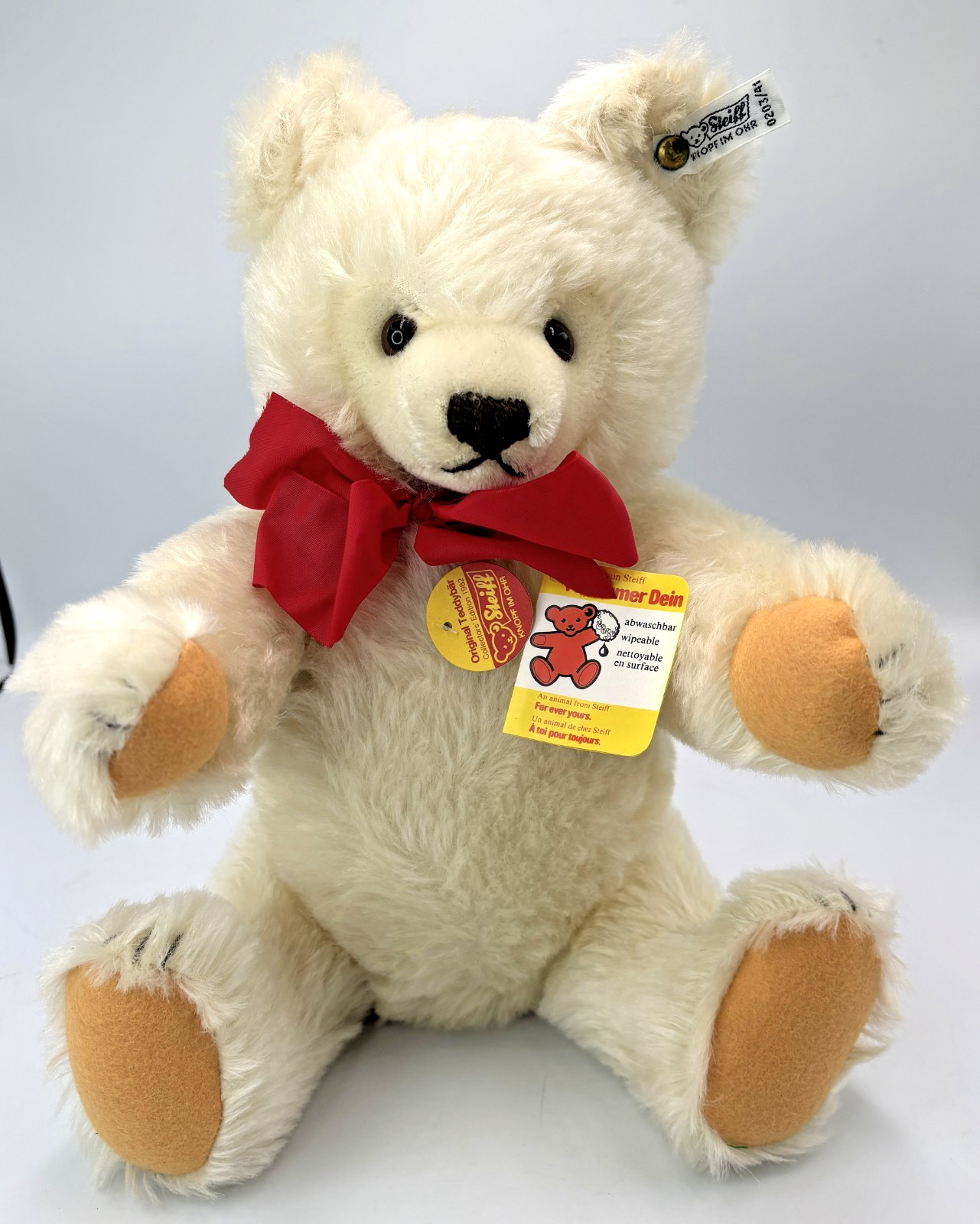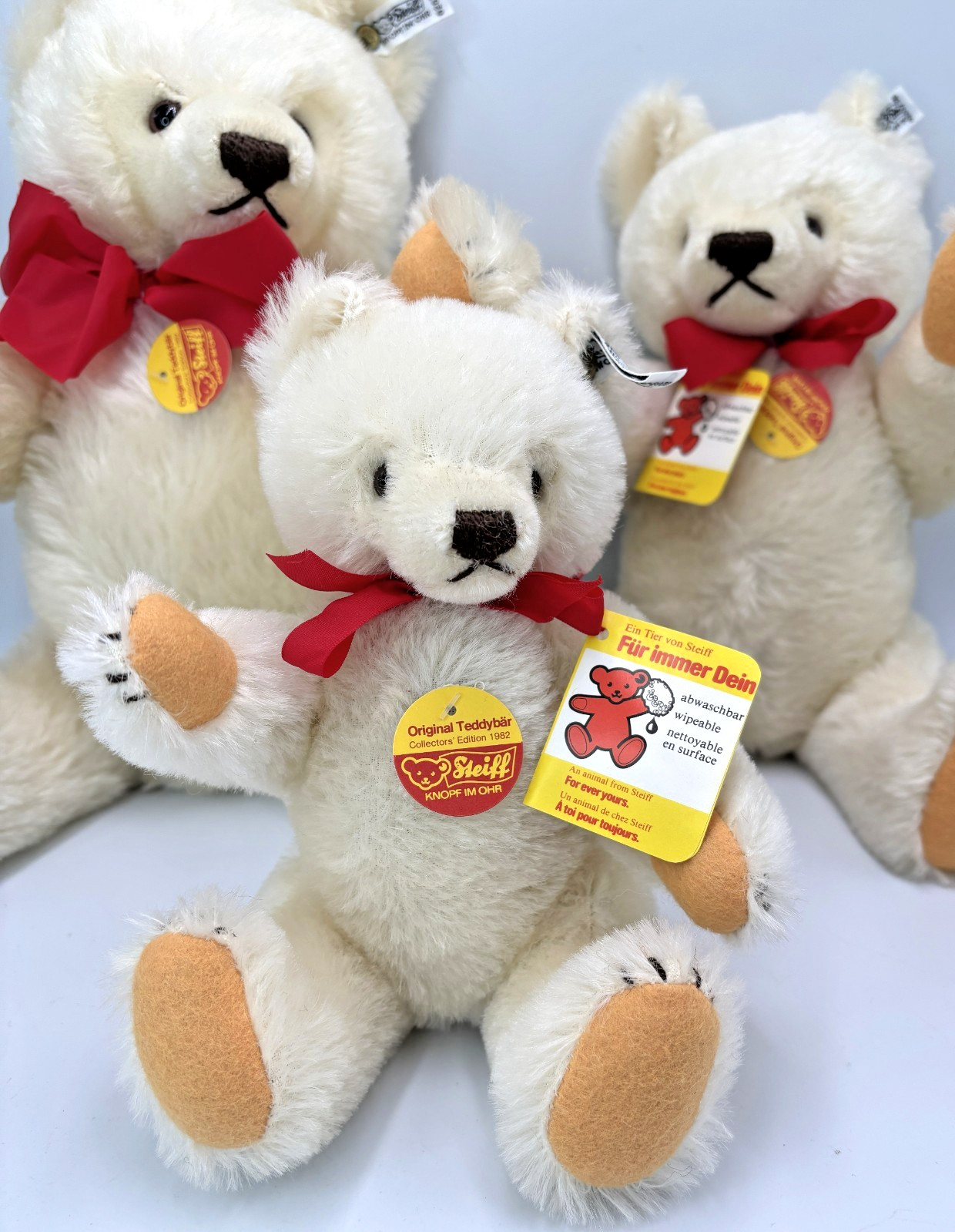 как выглядит Steiff White Mohair 1982 Teddy Bears 16" 13" 10" Poppa Momma Baby w/tags фото