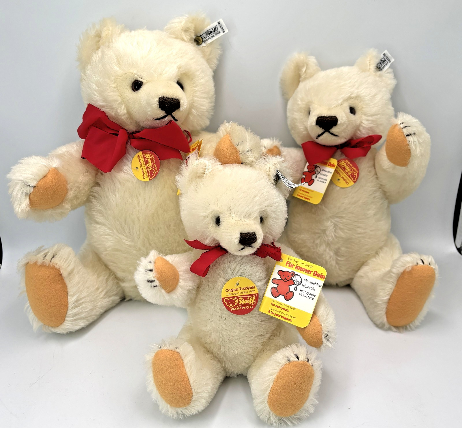 Steiff White Mohair 1982 Teddy Bears 16 13 10 Poppa Momma Baby w/tags