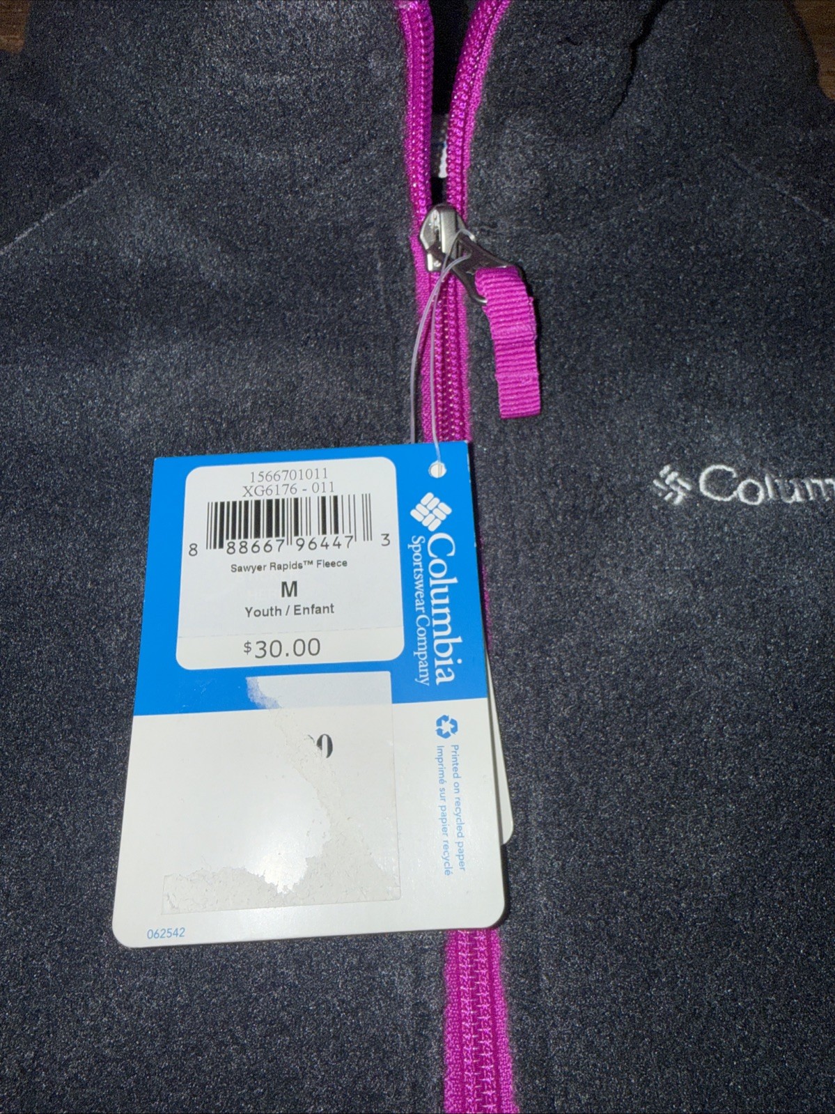 NWT Columbia SAWYER RAPIDS FULL ZIP Fleece jacket youth M MEDIUM BLACK PURPLE