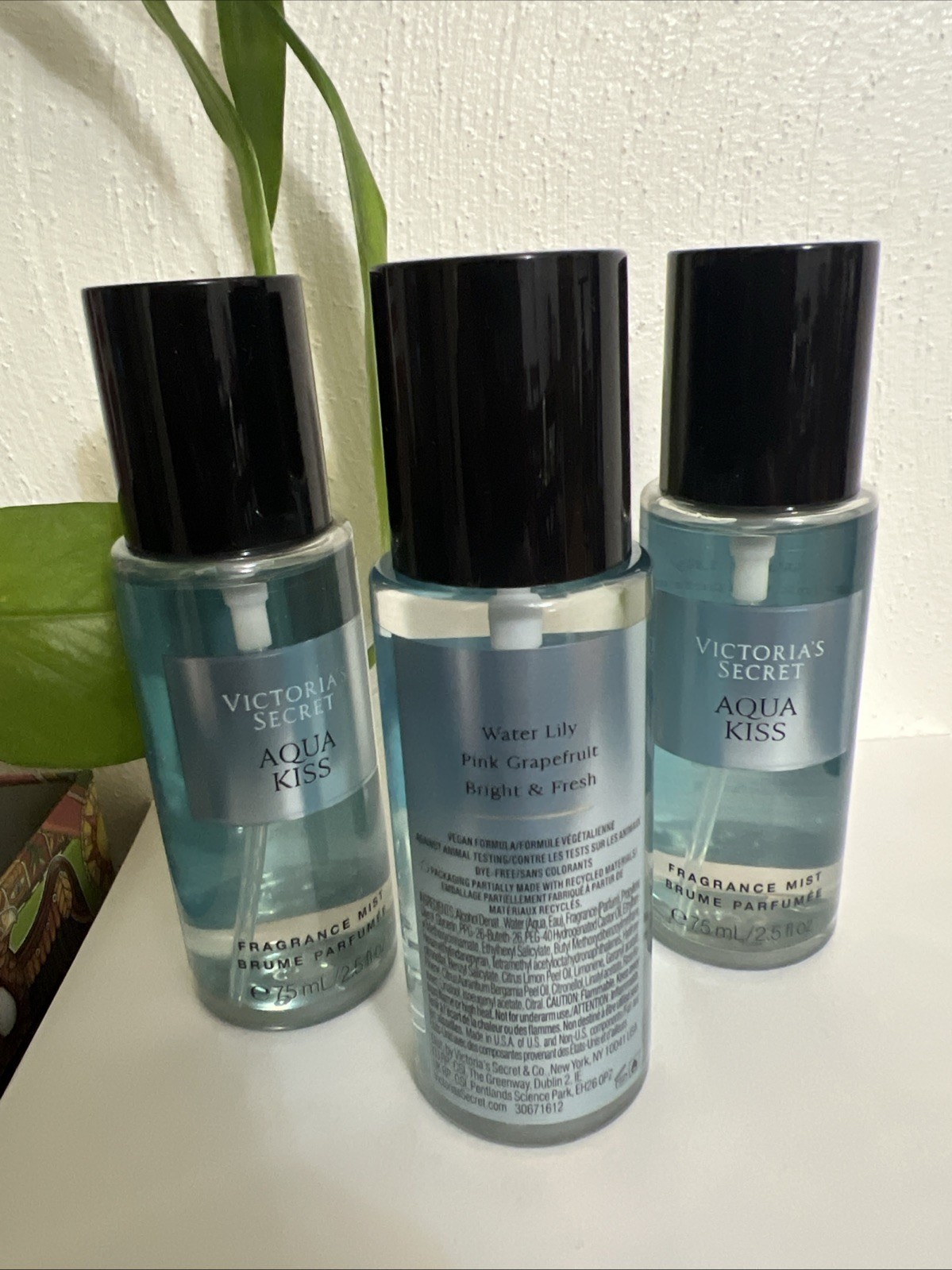 3 NEW VICTORIA'S SECRET AQUA KISS FRAGRANCE MIST BODY SPRAY TRAVEL SIZE 2.5 OZ