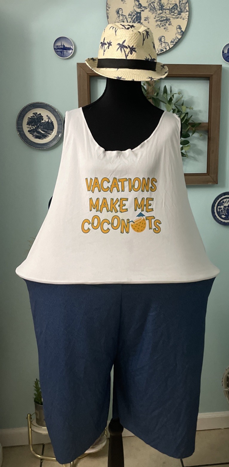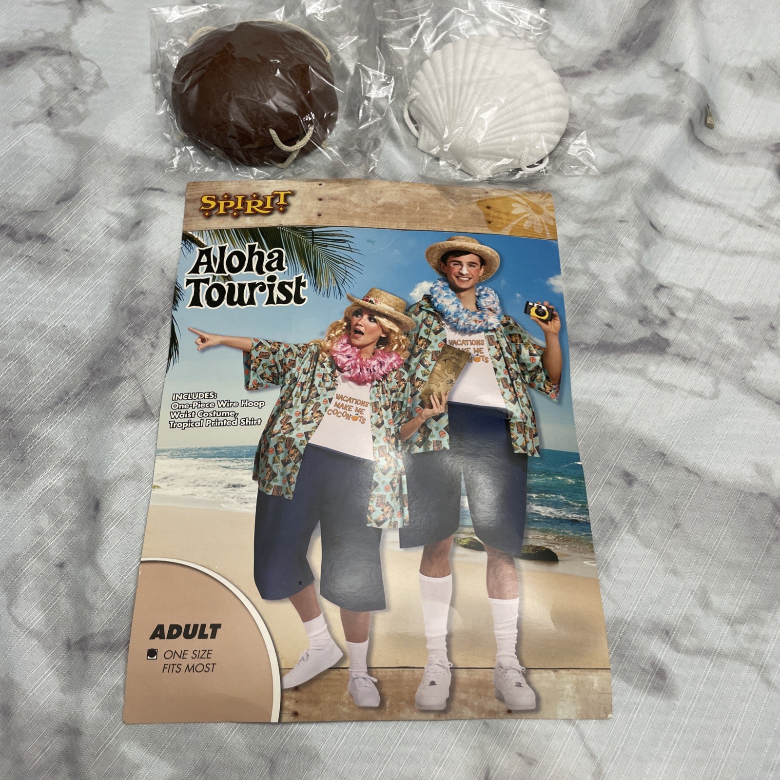 Aloha Tourist Costume Adult W/ Coconut/ Shell Plastic Bra, Hat, Lei 6,pc Set