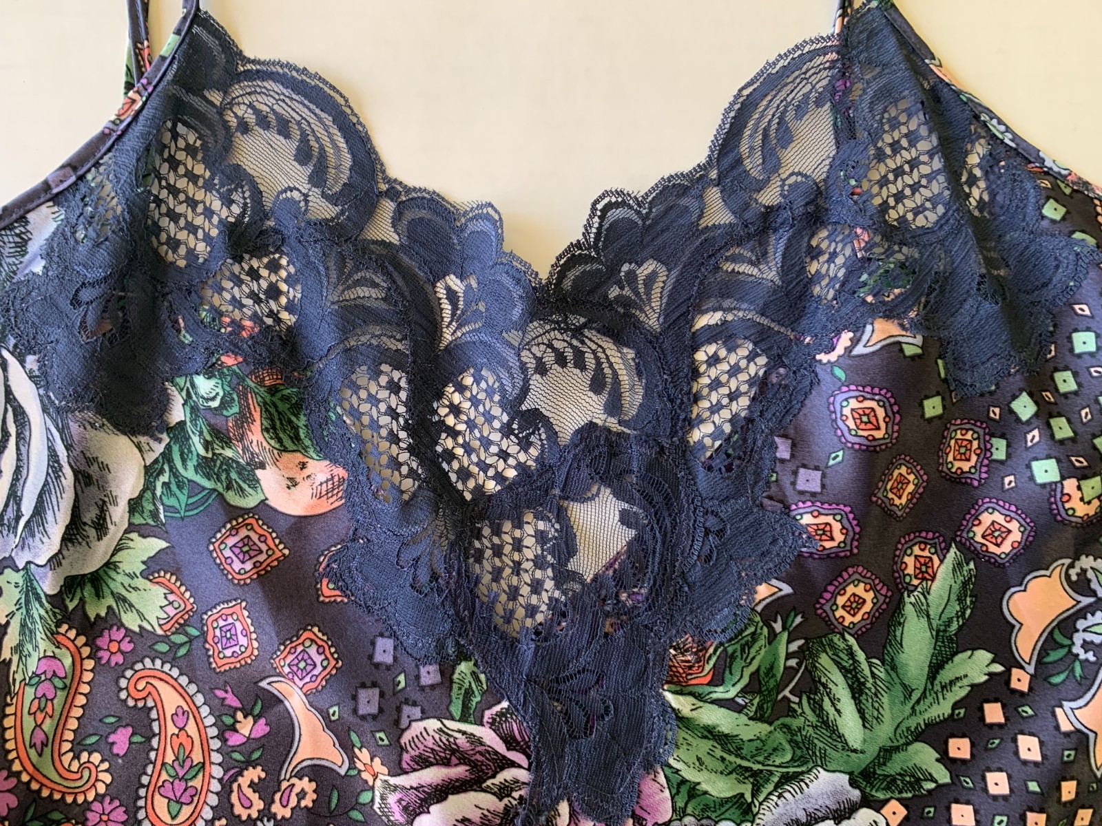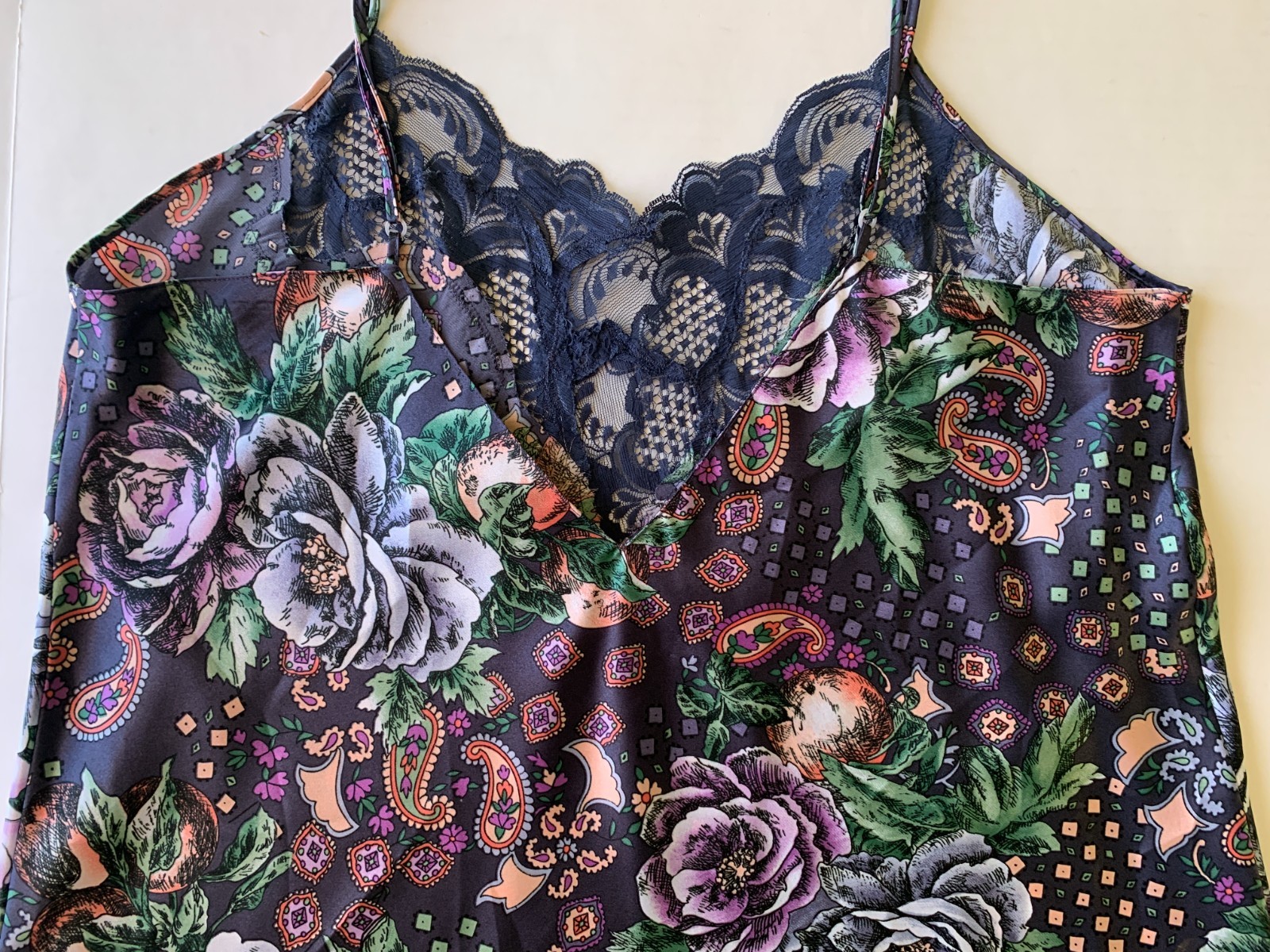 как выглядит Vintage Victorias Secret Gold Label Satin Floral Rose Print Lace Slip Dress L фото