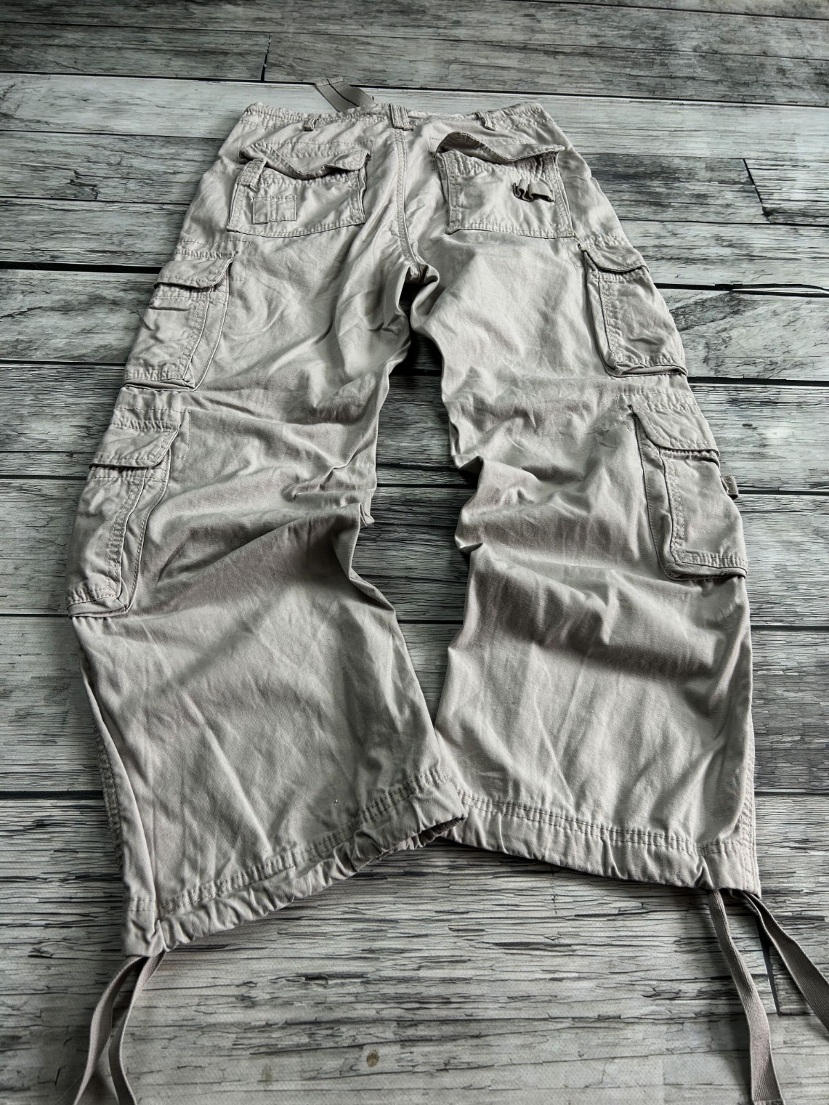 Mens Y2K Beige Cargo Pants Baggy Wide Leg Utility Military 2000s Streetwear
