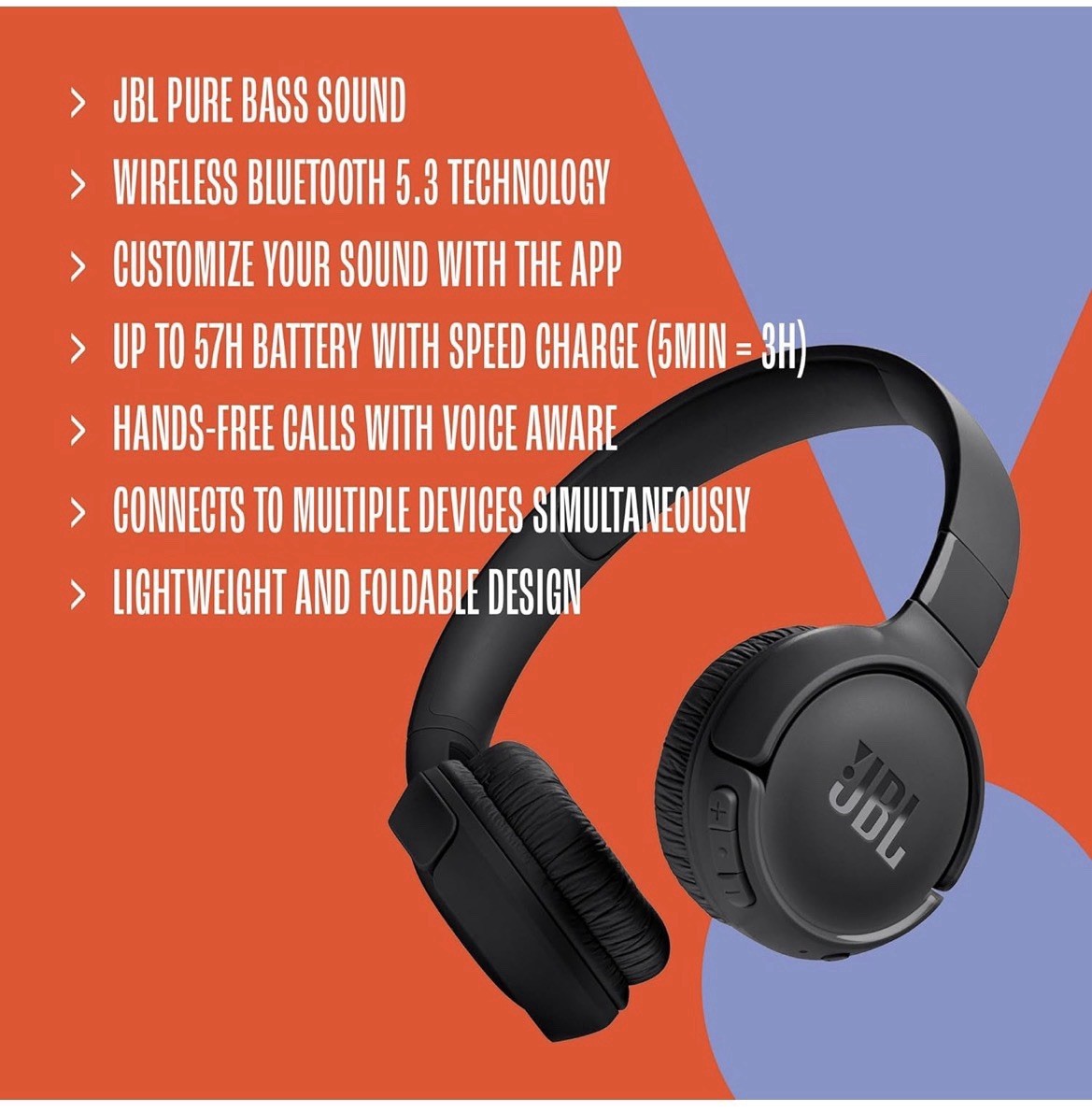 JBL Tune 520BT - Wireless On-Ear Headphones, Up to 57H Battery Life and Speed