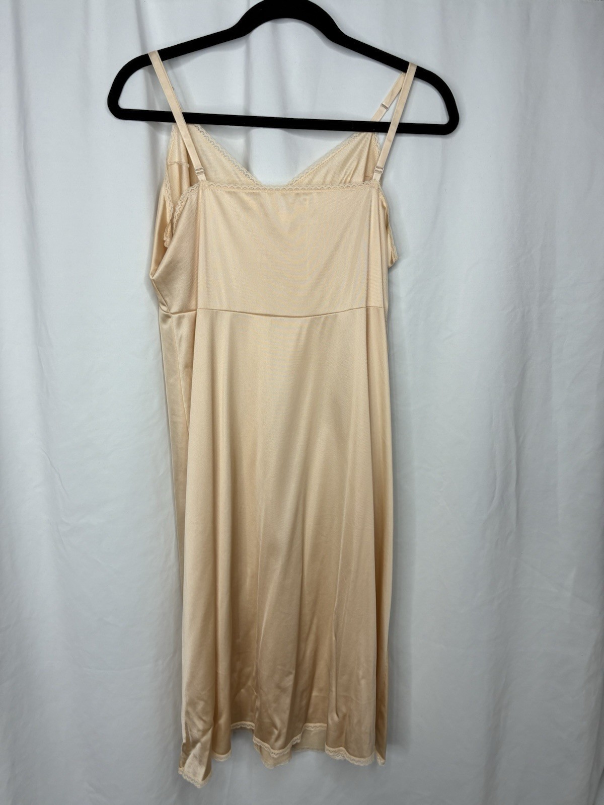 Vintage Vanity Fair Dress slip Size 38 L Full Slip Nude Beige Nylon Lace Trim