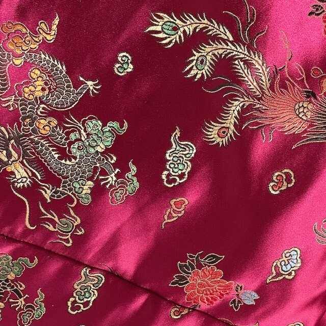 как выглядит Vintage Unisex Embroidered Silk Dragon Pocket-Sleeve Kimono Maroon 48" x 51" фото