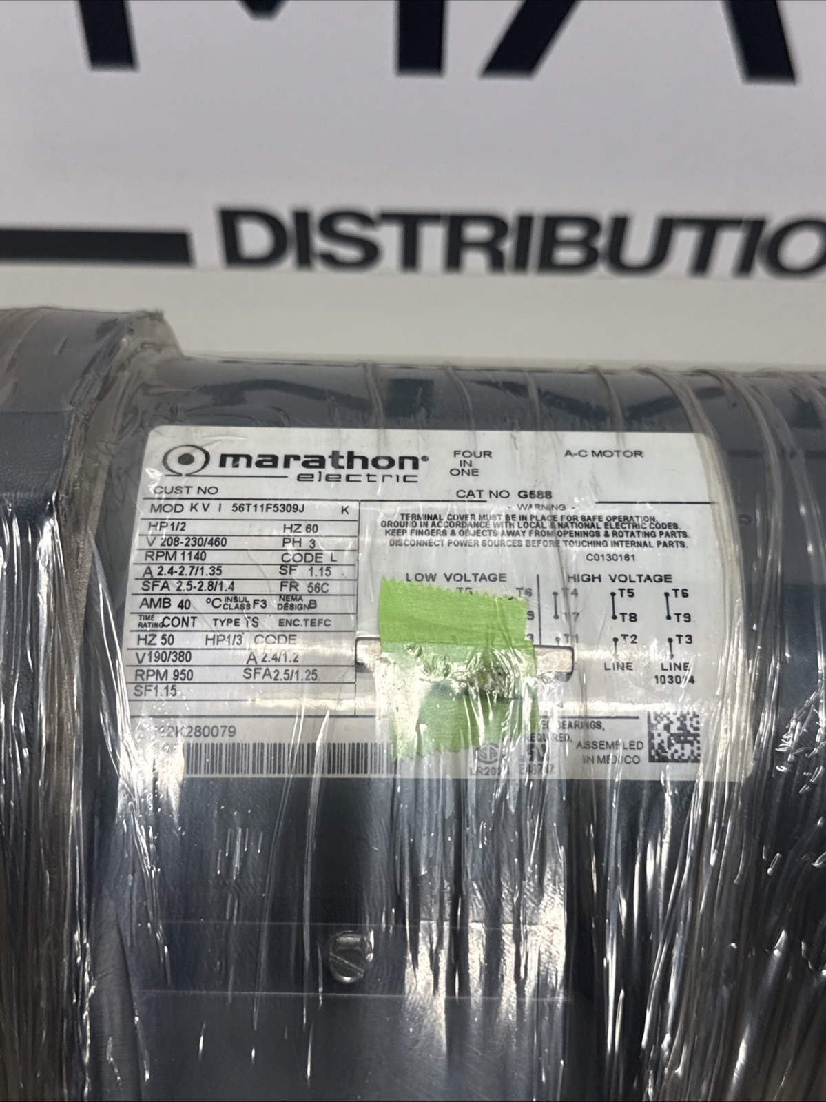 Marathon Electric, DVA 56T11F5309J K, 1/2Hp 208-460v NEW