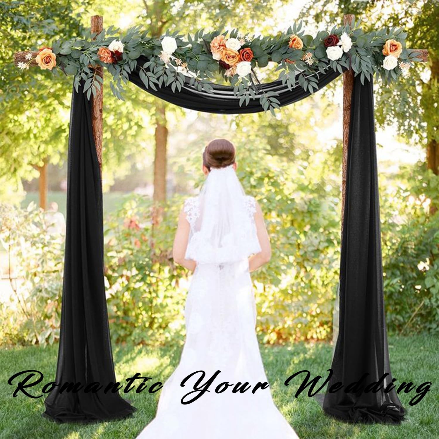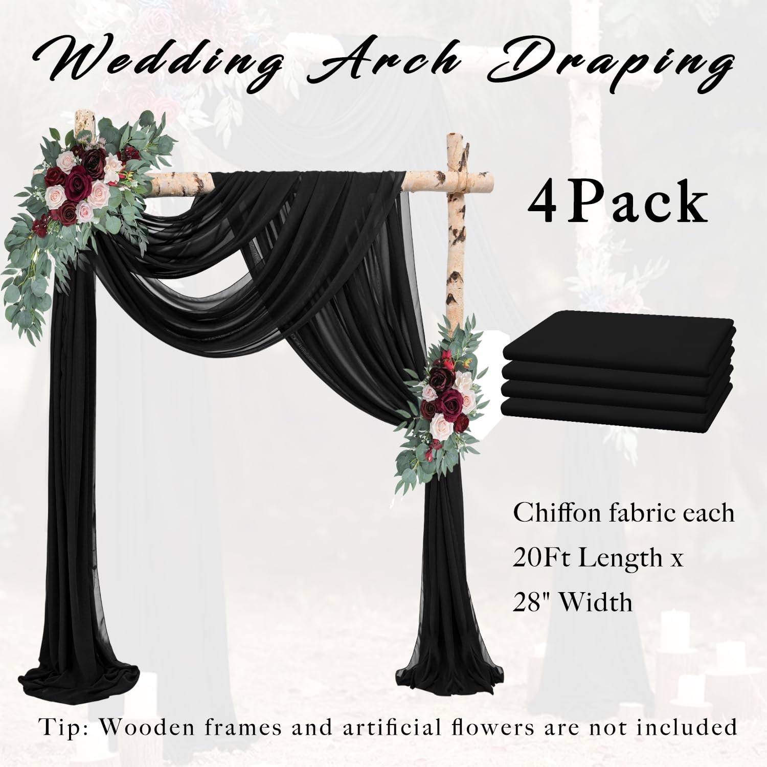 как выглядит 20Ft x 28 Inch Wedding Arch Draping Fabric Black Chiffon Curtain 4 Panels фото