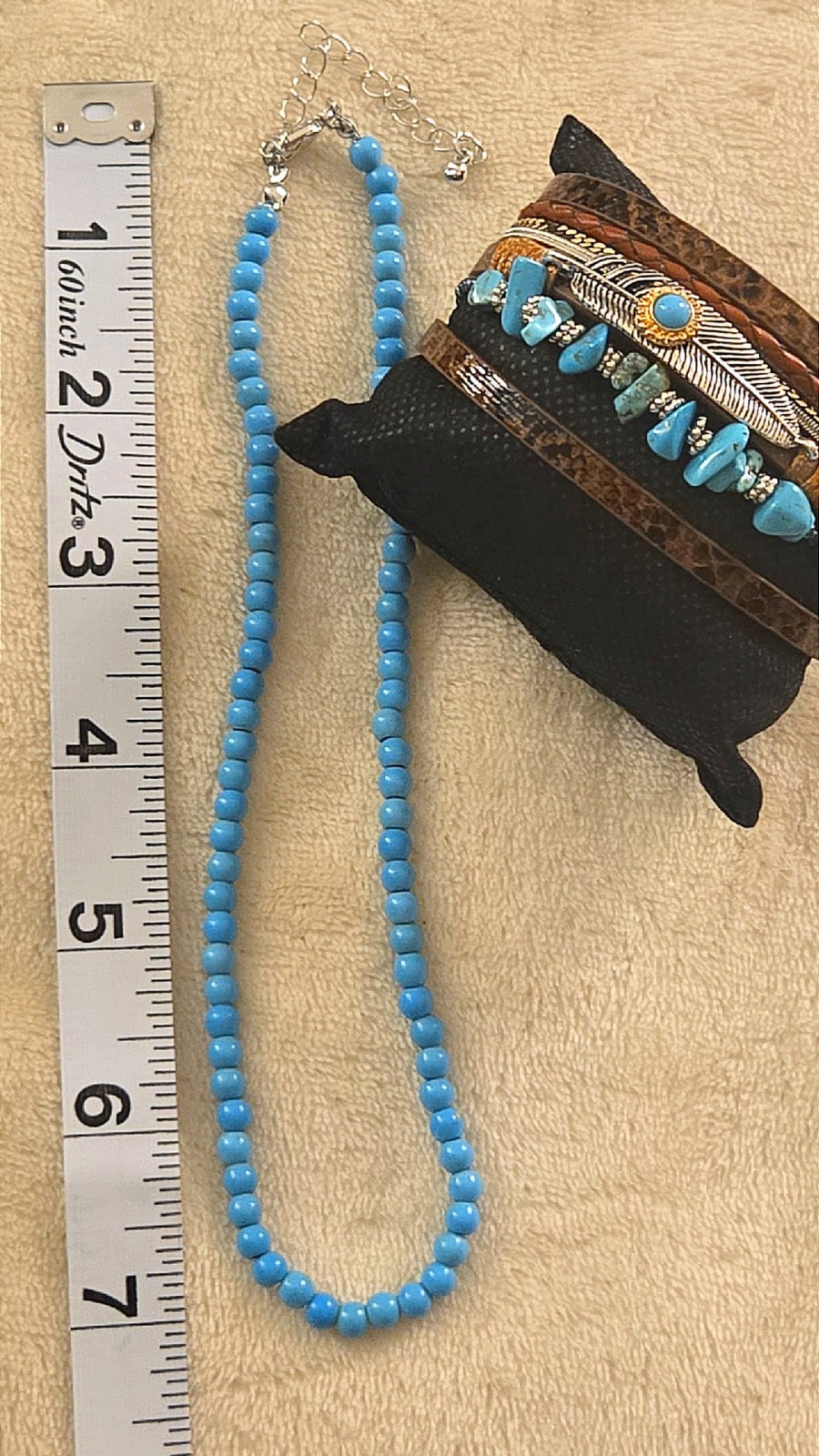 как выглядит Faux Turquoise Beaded Necklace Bracelet Jewelry Set Fashion Chic western boho фото