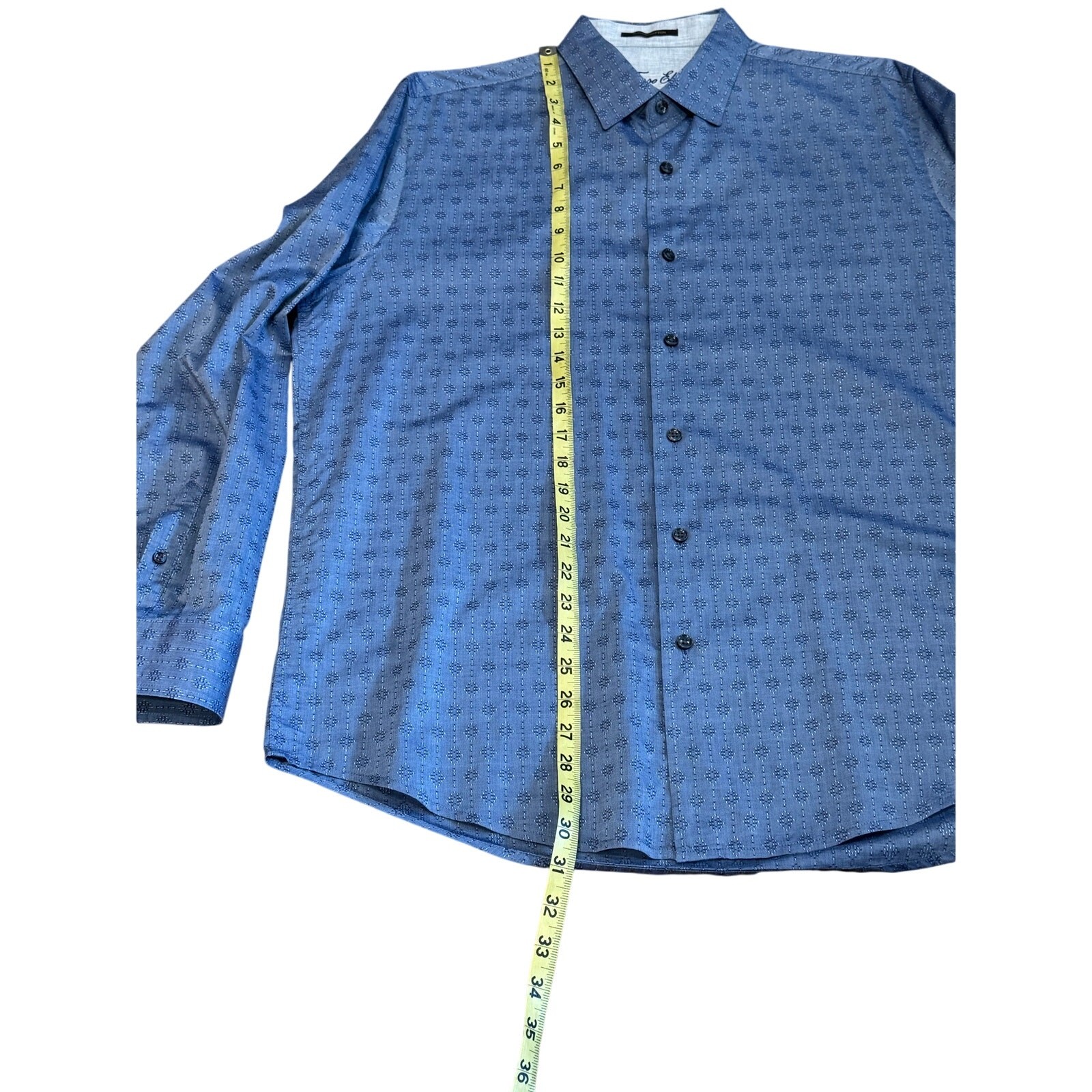 как выглядит Tasso Elba Mens Large Blue Dress Shirt Supima Cotton Diamond Tile button down фото