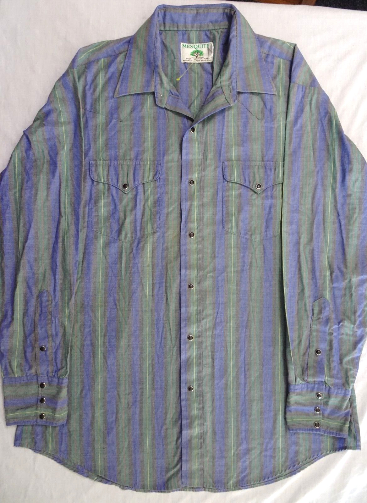 MESQUITE NIVER Blue Stripe Western Snap Shirt Men's Large 16.5X34 TX USA VGUC