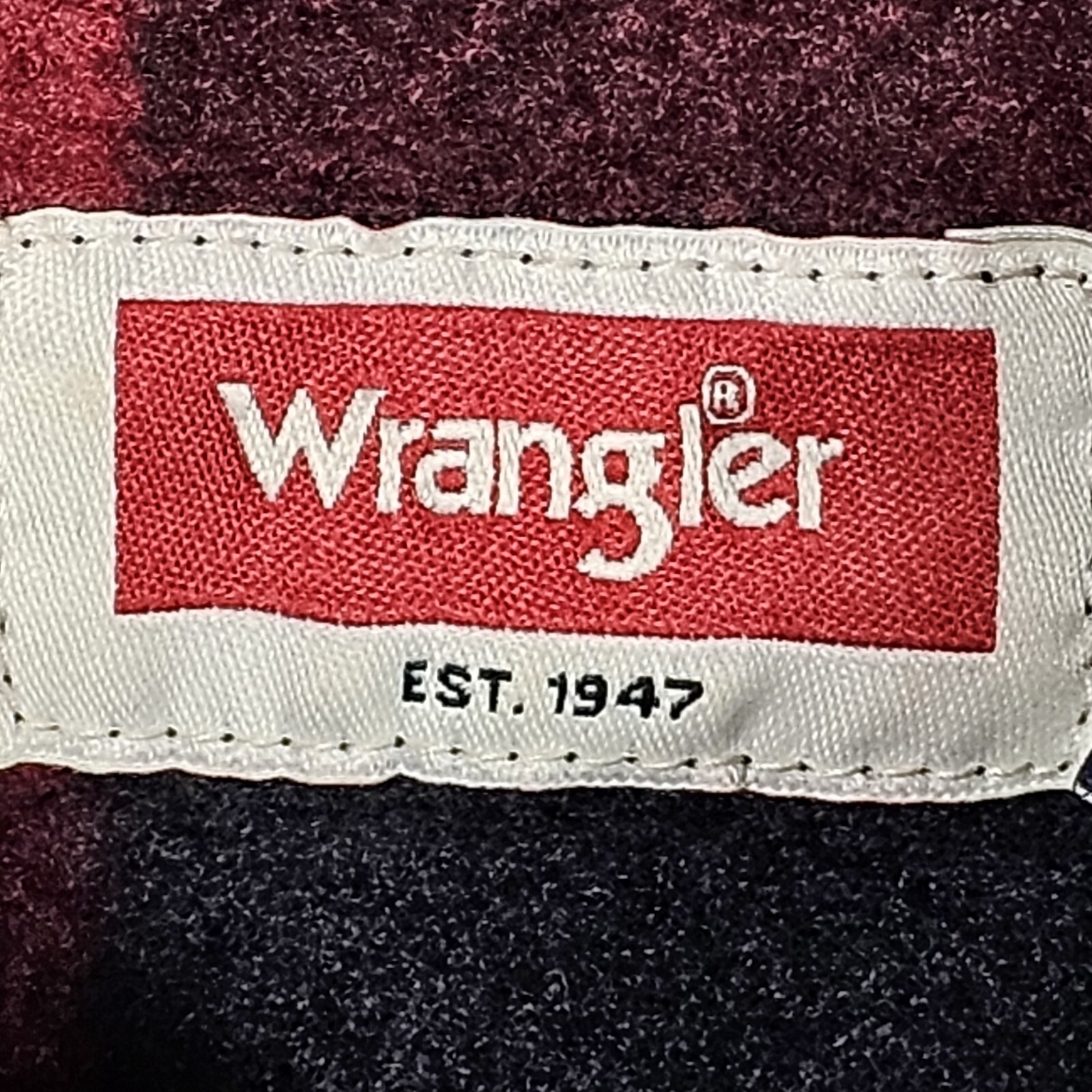 Buffalo Plaid Flannel Shirt Wrangler Men M Red Black Long Sleeve Cotton Pockets