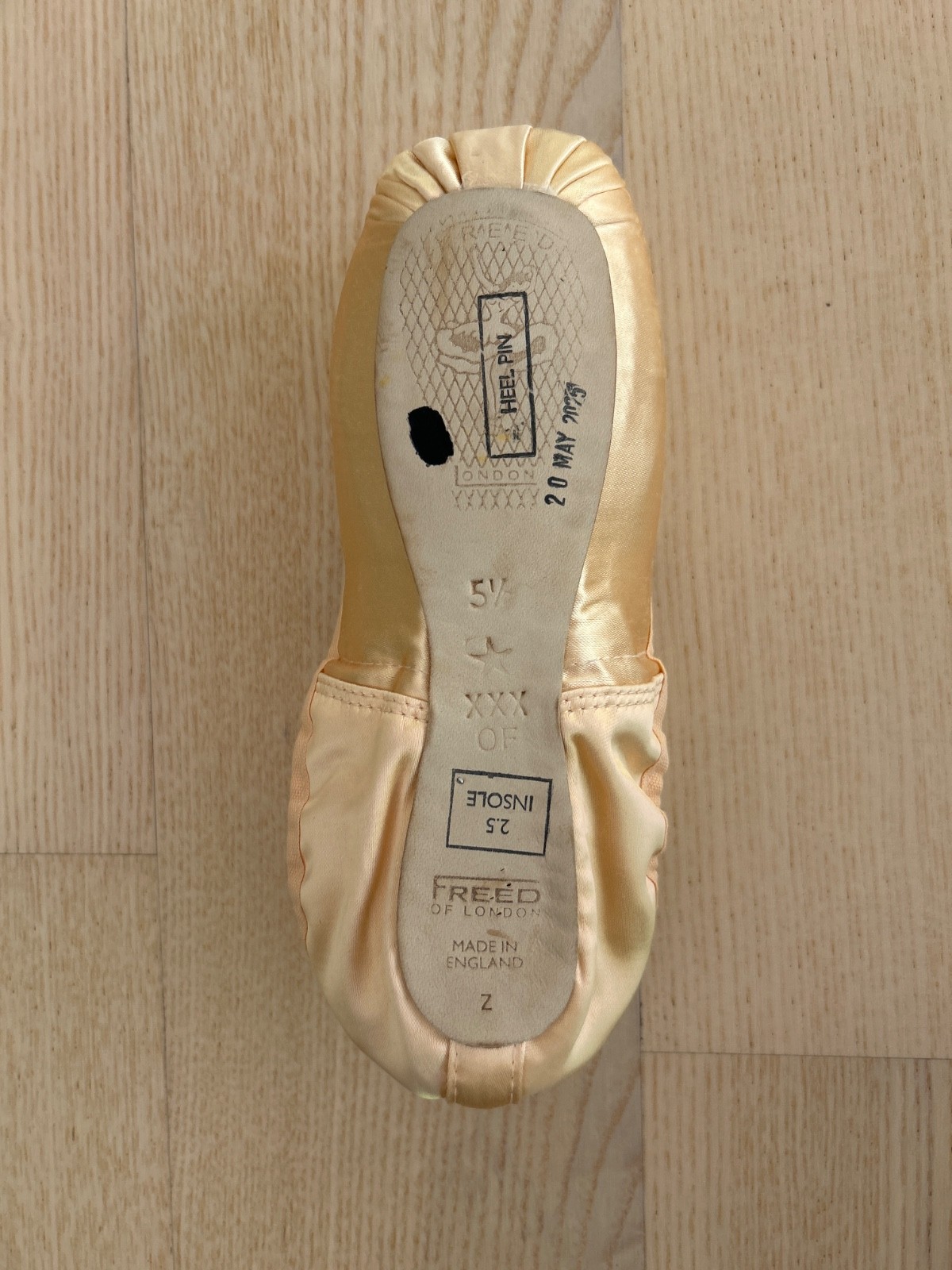 как выглядит Freed of London pointe shoes, size 5.5 heel pin XXX, custom star maker фото