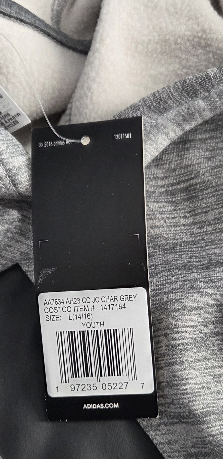 NWT adidas Boy's Large 14/16 Charcoal Grey Essential Fleece Hoodie AA7834