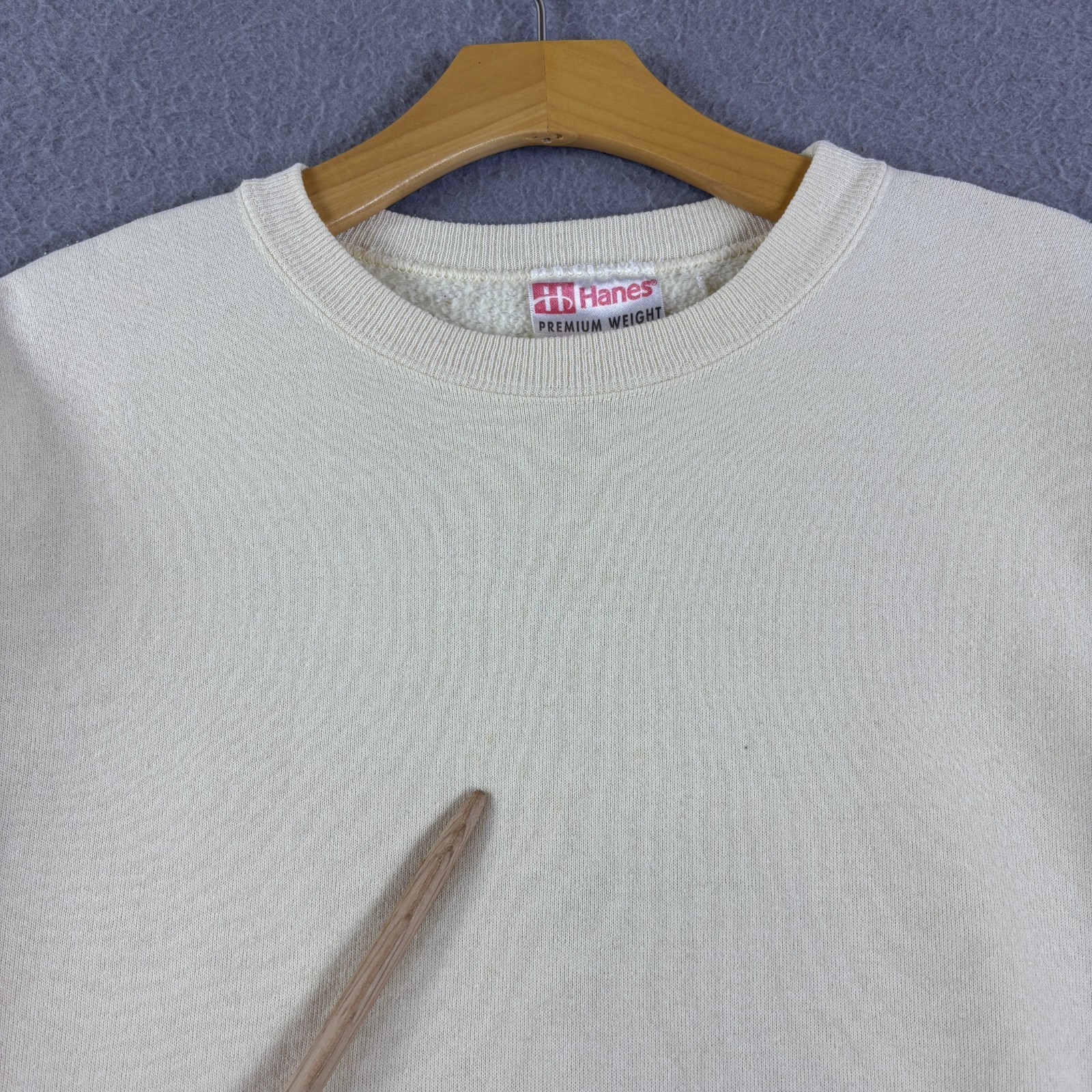 как выглядит Vintage 90s Hanes Premium Weight Crewneck Sweatshirt Cream Size XL Blank фото