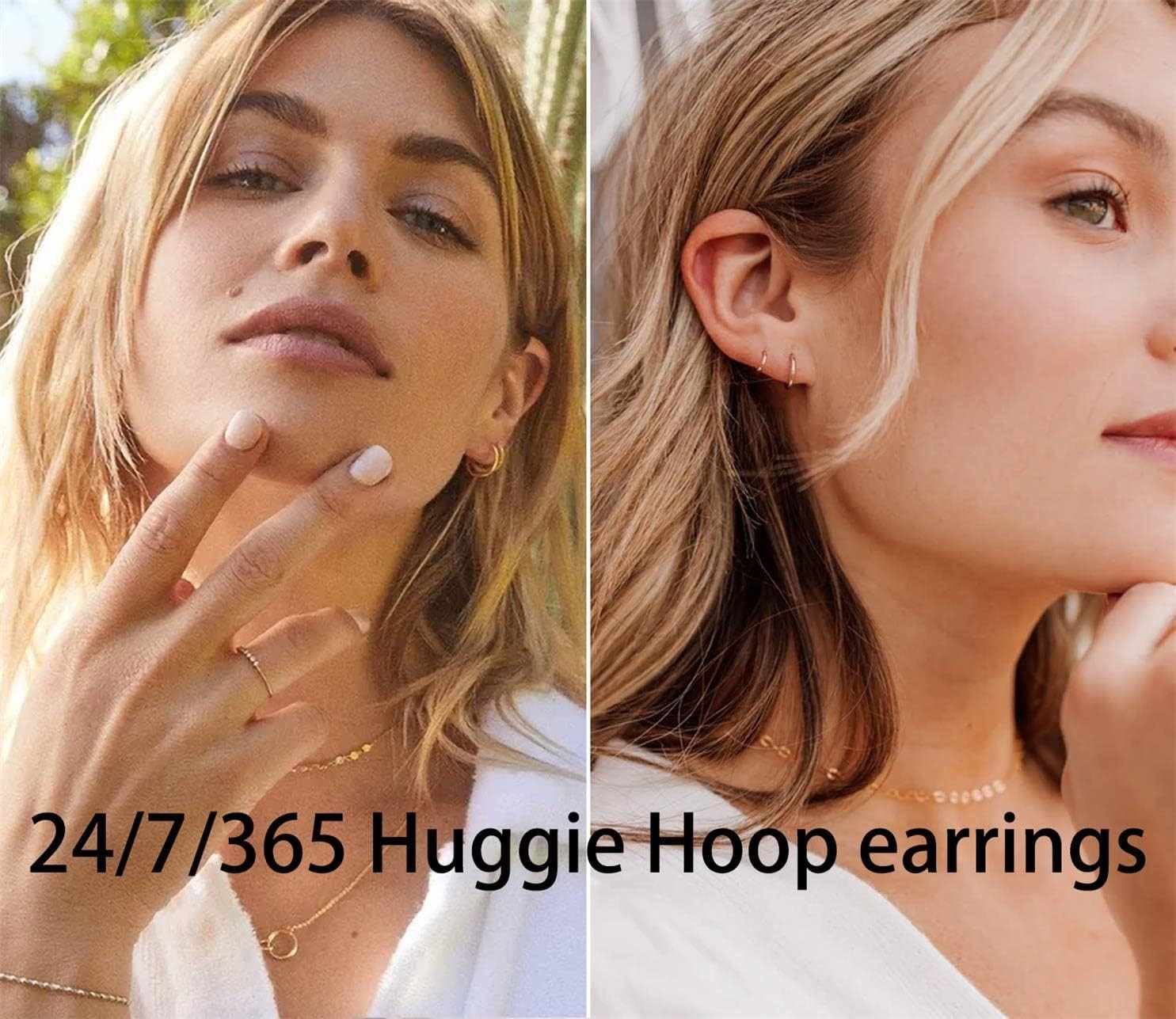как выглядит Dainty Small Gold Hoop Earrings for Women Set: 5 Pairs Lightweight 14K Gold Mini фото