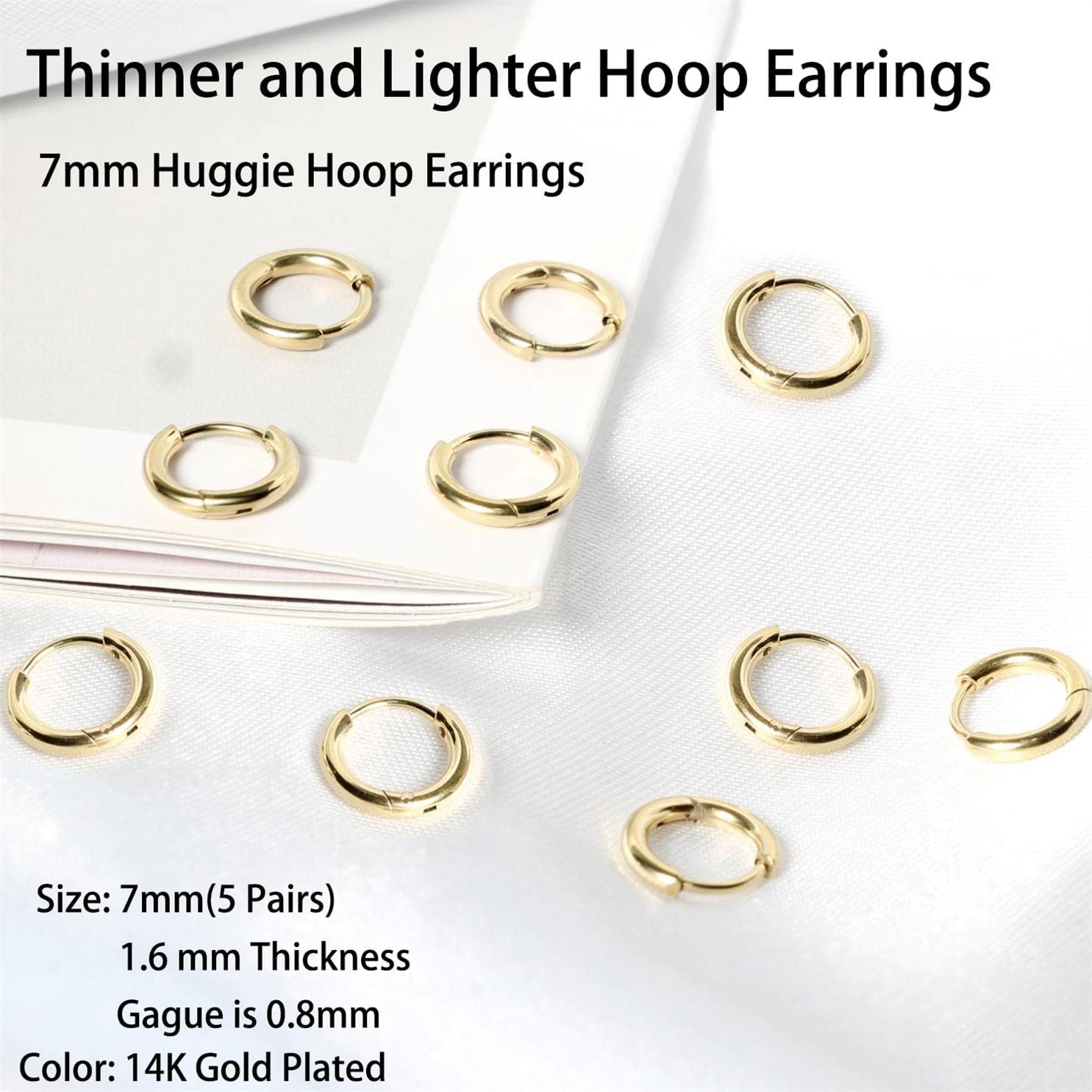 Dainty Small Gold Hoop Earrings for Women Set: 5 Pairs Lightweight 14K Gold Mini