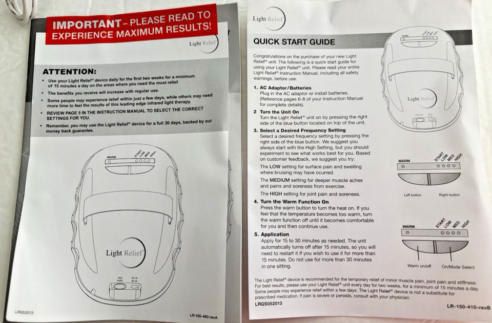 Light Relief LR150 Infrared Pain Relief Therapy Device with/Case Tested Working