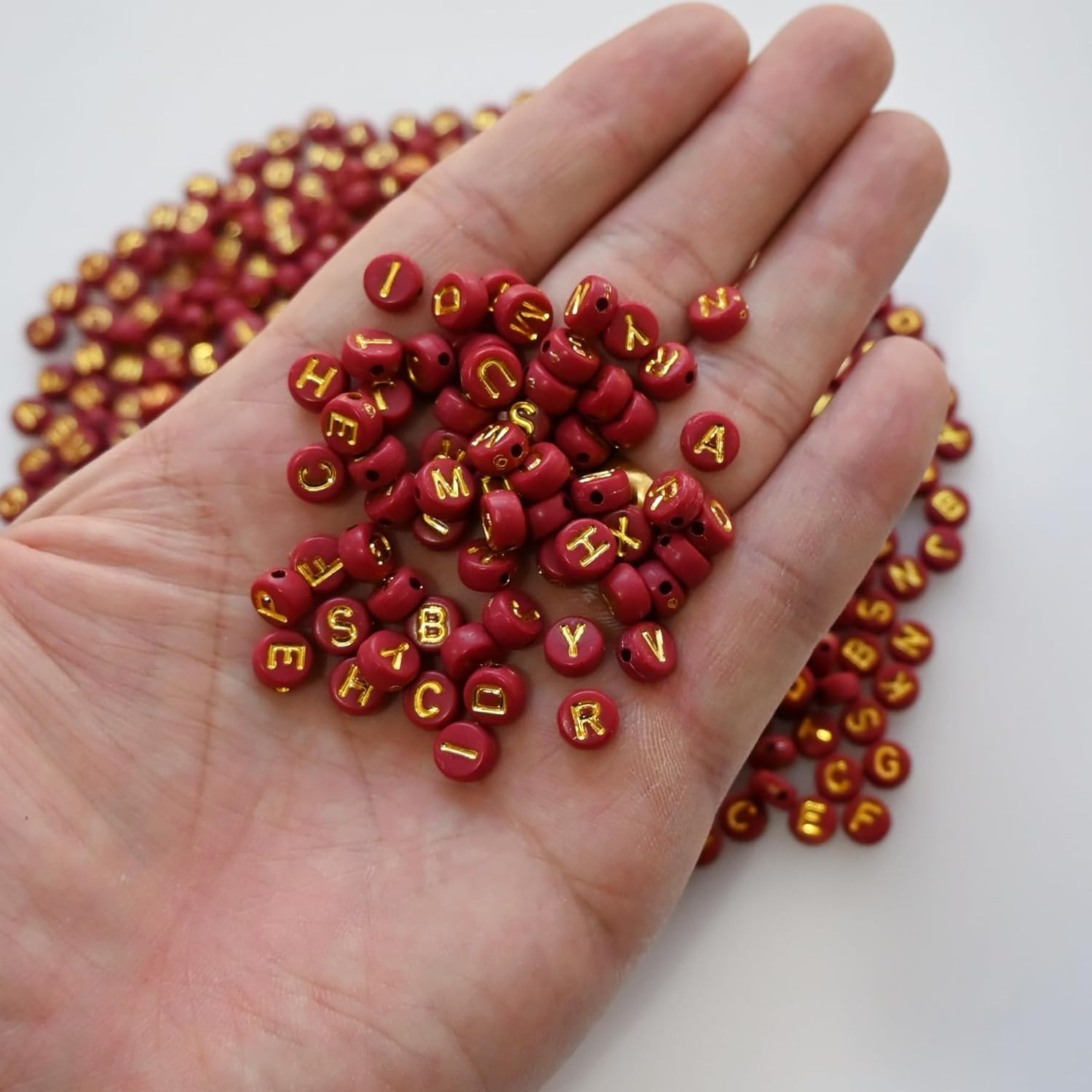 Amaney 1000Pcs Red Letter Beads Gold Beads 7X4Mm for Jewelry Making Bracelet Hai