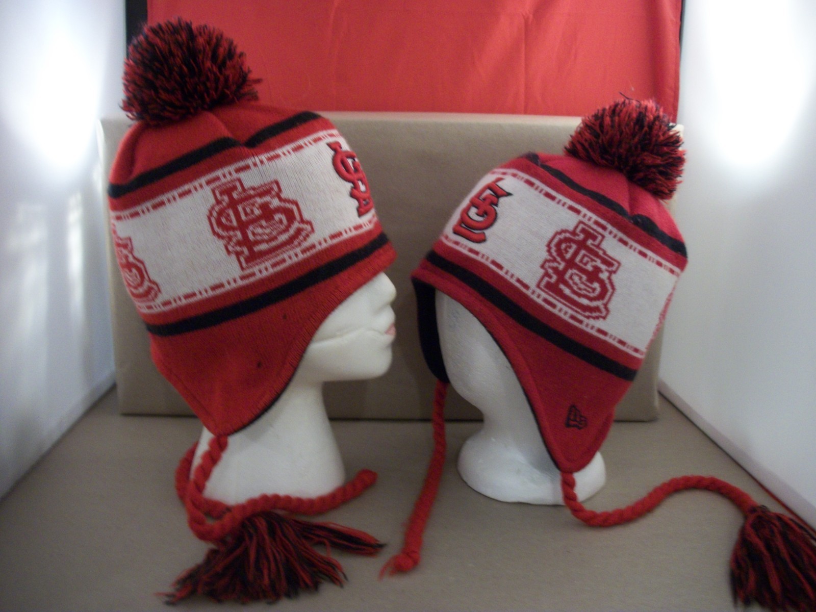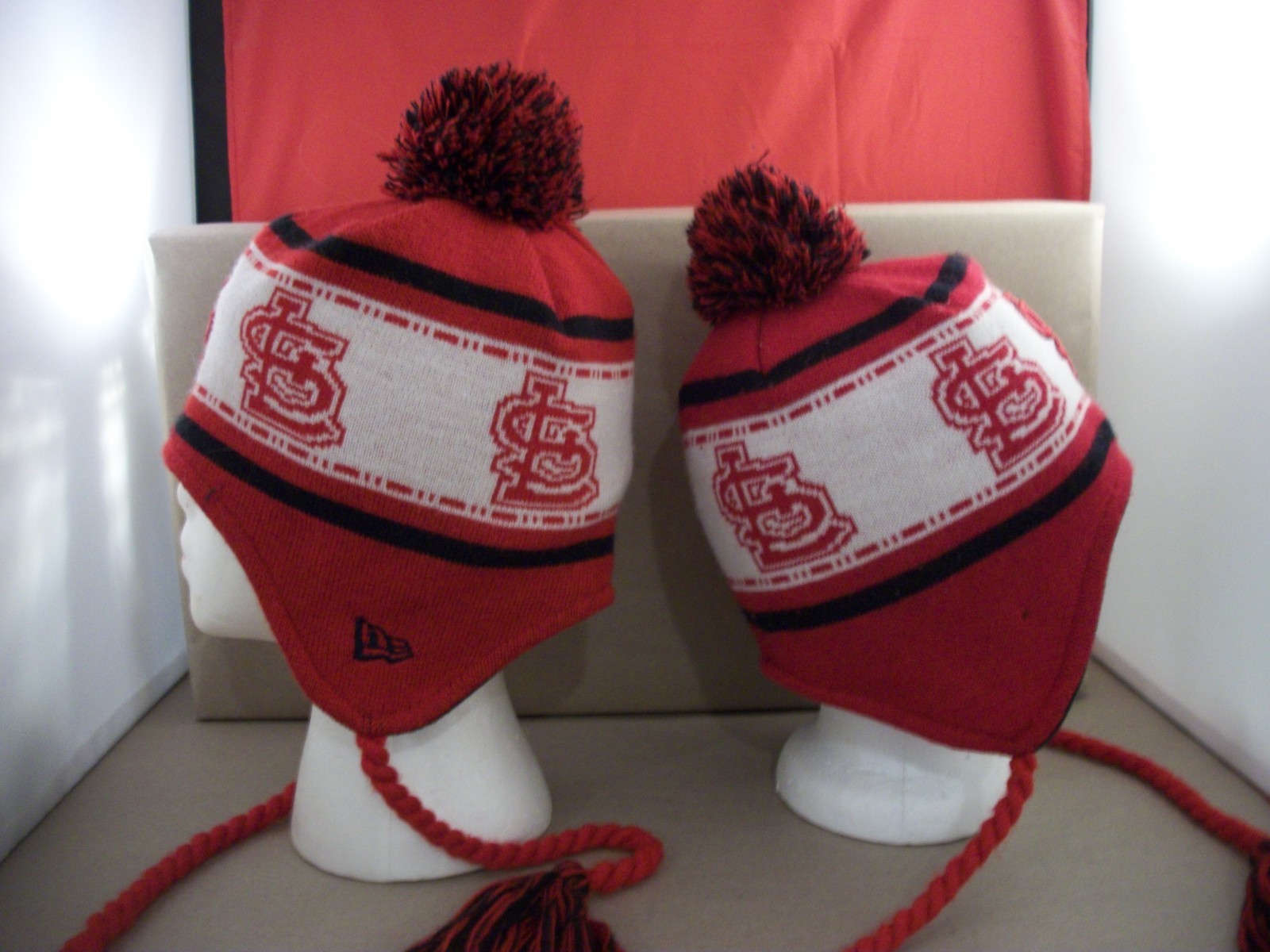 2 Preowned St. Louis Cardinals Winter Knit Beanie Hats with Tassels