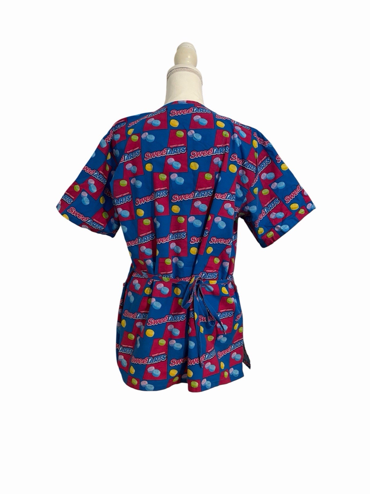 Nestle Sweet Tart Tangy Candy-theme Print Nursing Medical Scrub Top Women s Lg