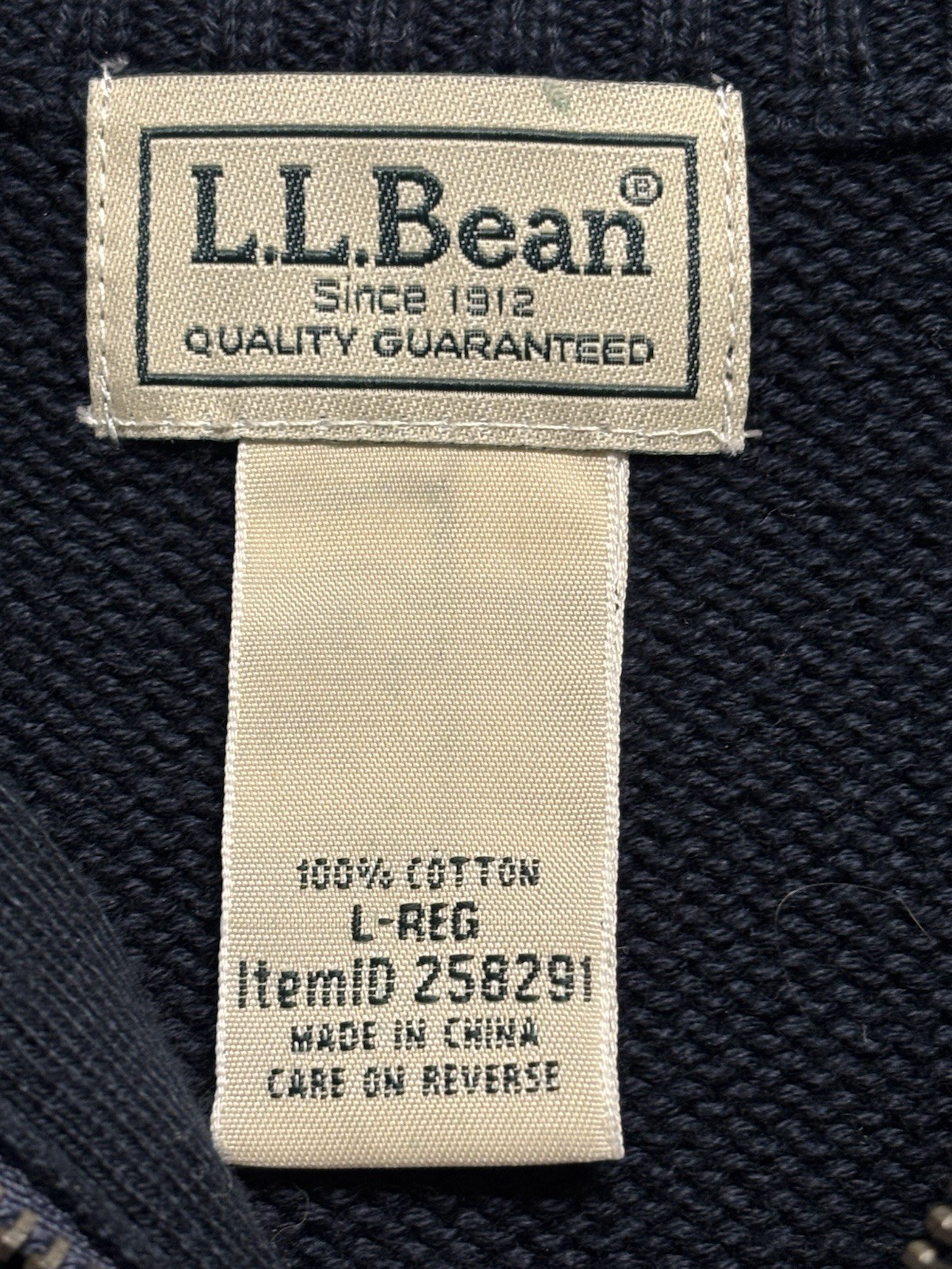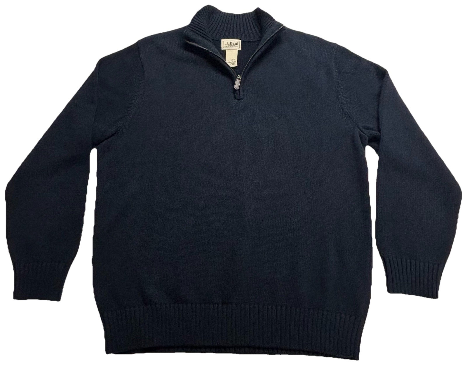 L.L. Bean Men's Large Pullover Sweater 1/4 Zip 100 Cotton Regular Ribbed Blue