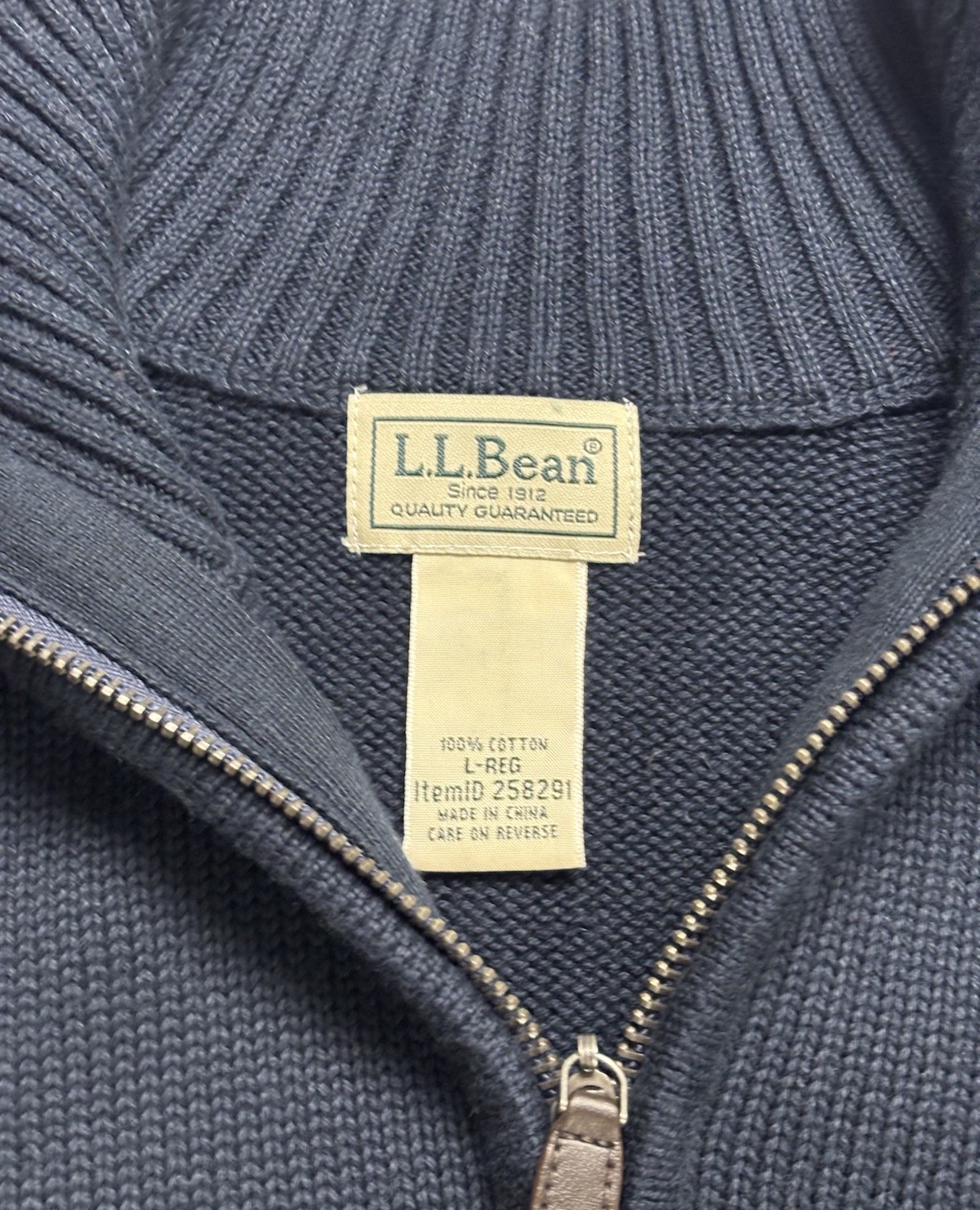как выглядит L.L. Bean Mens Large Pullover Sweater 1/4 Zip 100 Cotton Regular Ribbed Blue фото